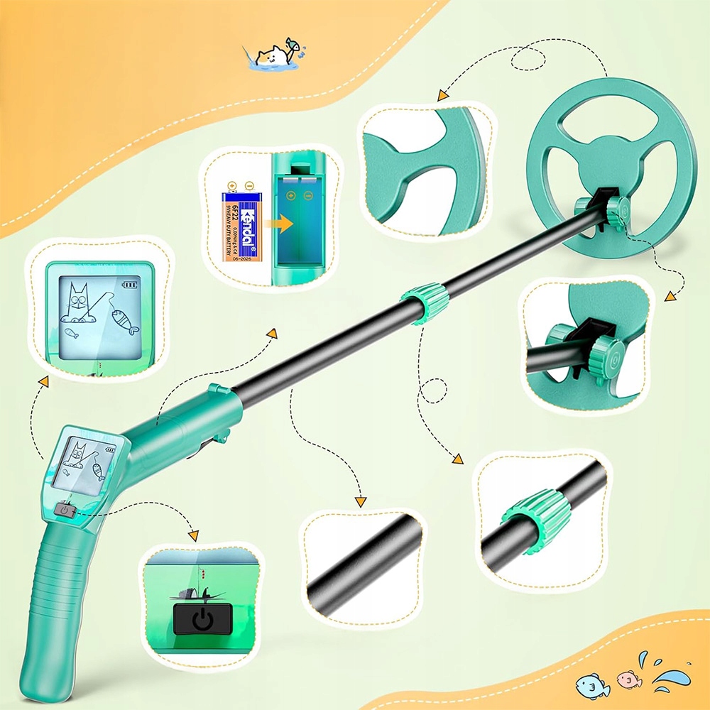 - ✨ekran LCD и звуковой дисплей: дисплей нашего металлоискателя был разработан с очаровательной анимацией рыбной рыбной кошки. Если вы посмотрите, рыба на дисплее будет продолжать появляться. Когда детектор находит свою цель, начинается рыба. В этот момент небольшая рыба в левом верхнем углу загорается и издает звук. Очень яркий и интересный. Позвольте детям наслаждаться удовольствием открытия!
