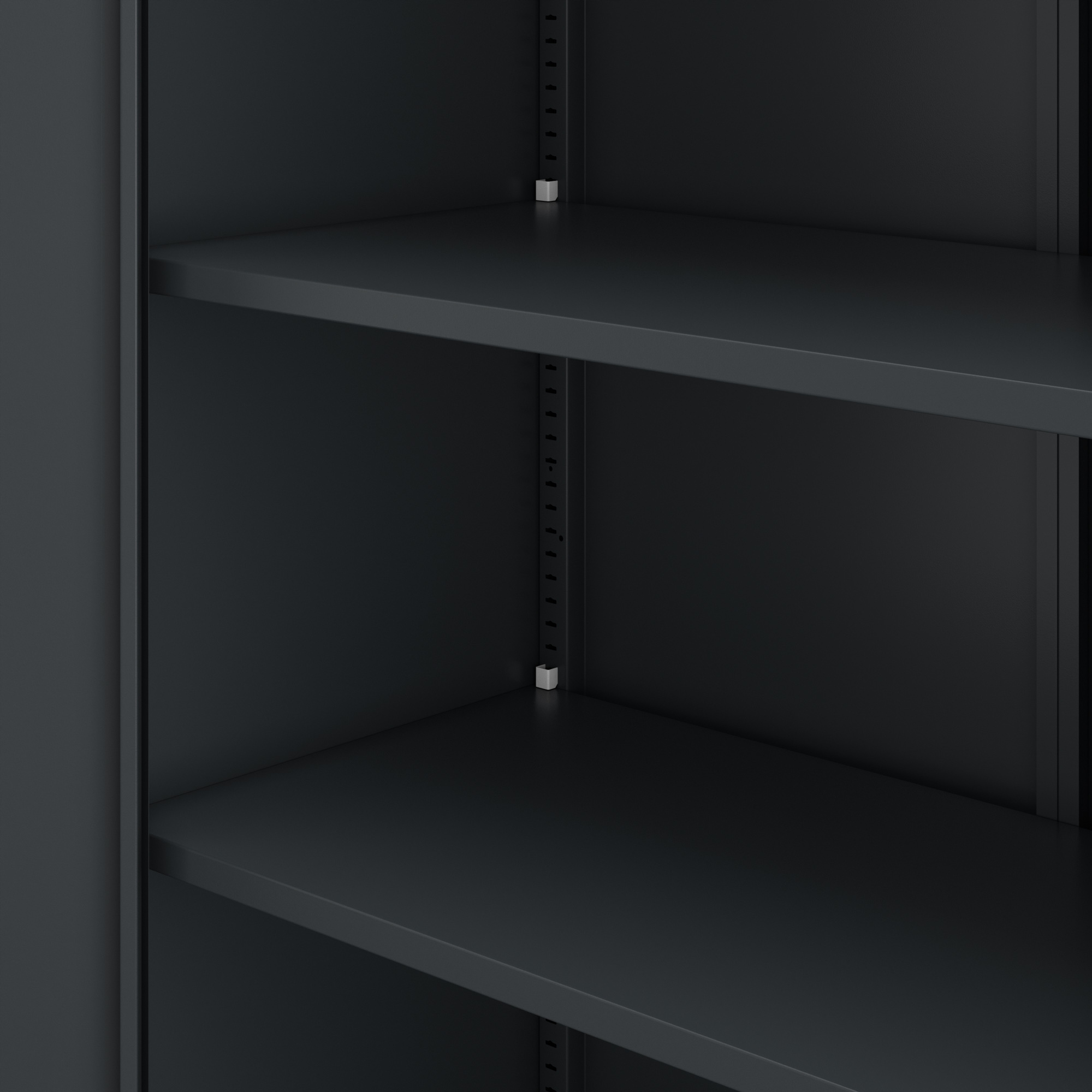 На прочные полки будут соответствовать переплетам, папкам, инструментам, рабочей одежде или офисным принадлежностям.