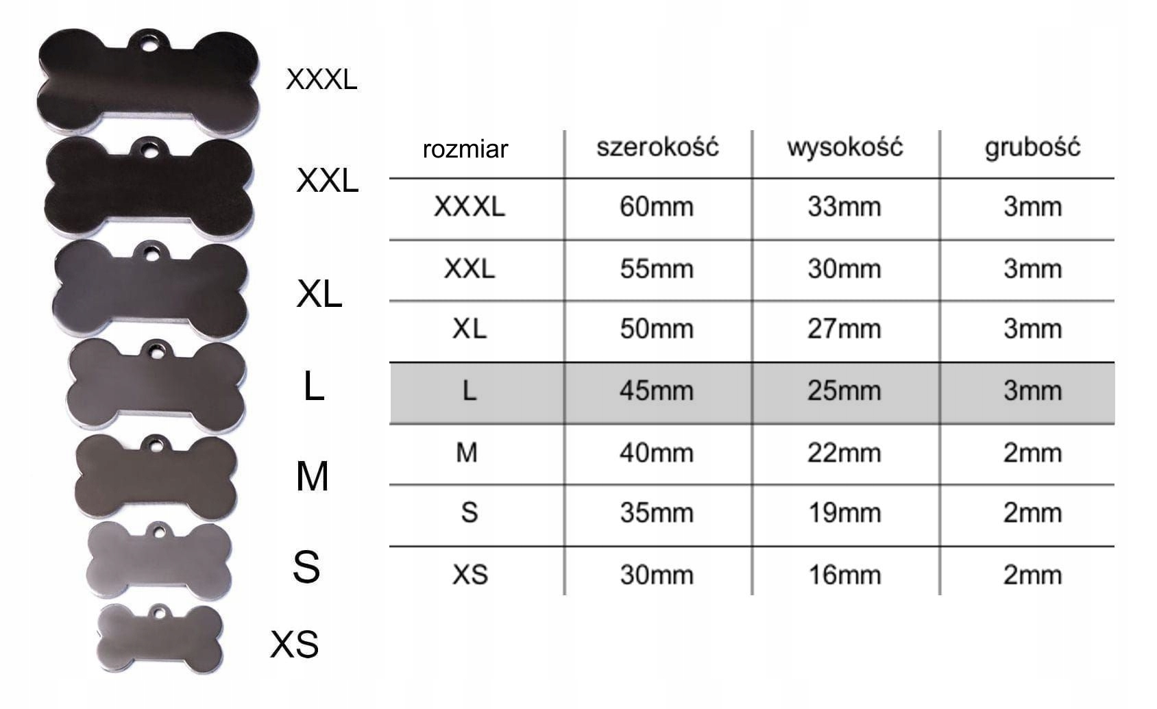 Металевий ідентифікатор, адресна картка - Гравірування КІСТКИ - L