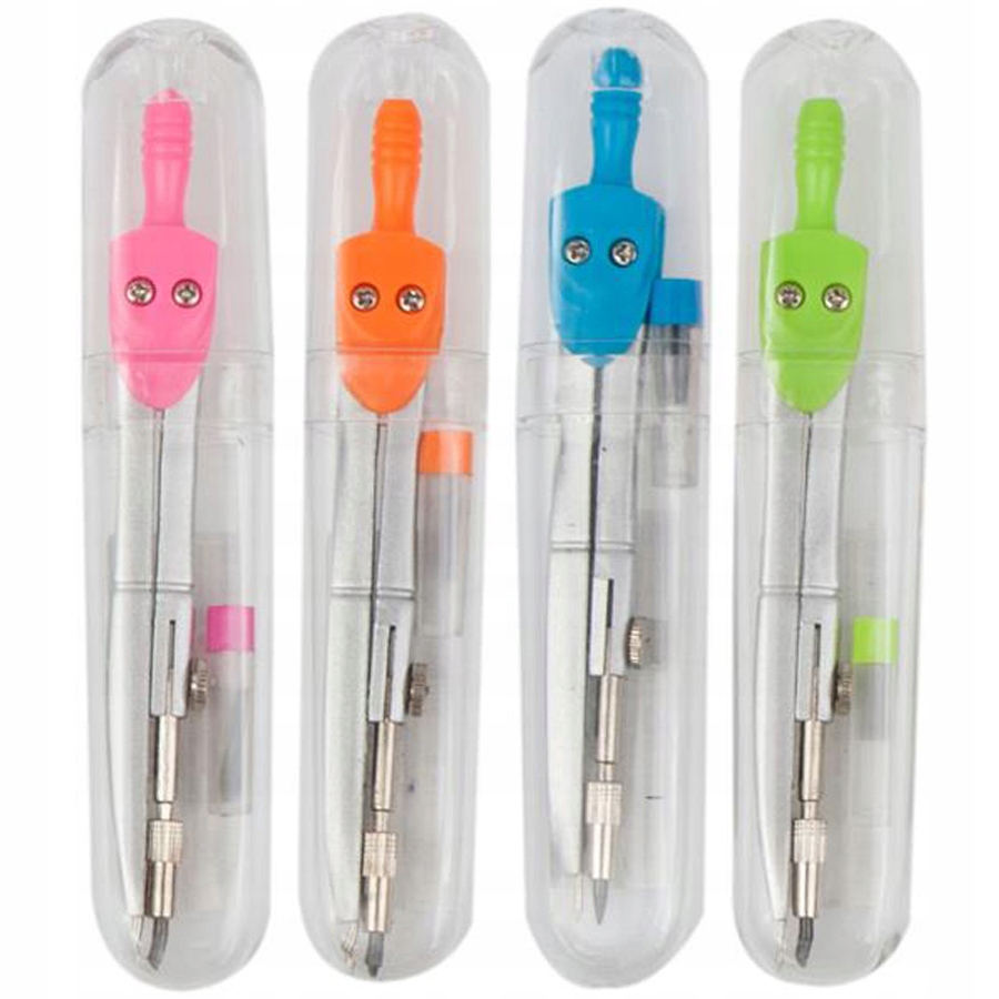 Благодаря его эргономичной форме и комфортному сцеплению, работа станет более приятной и более эффективной. Металлический компас в прозрачном случае. Запасные графиты включены. Доступно в синем, зеленом, розовом и оранжевом.
