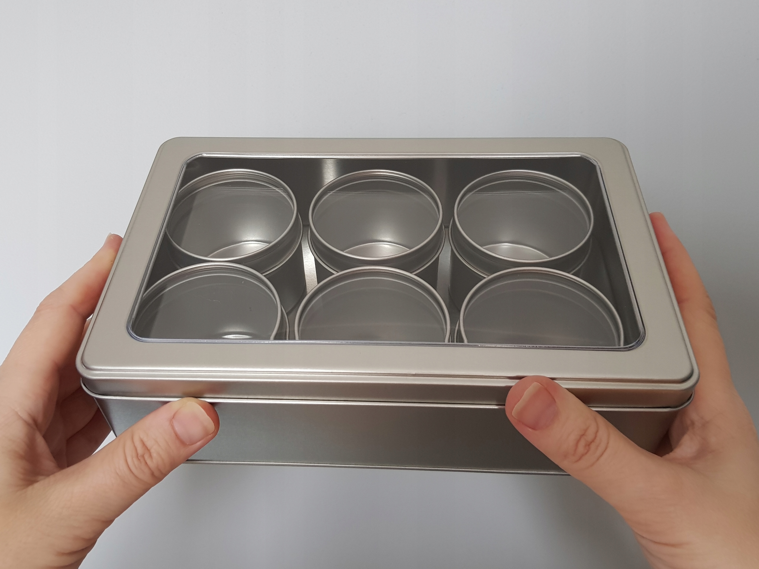 Контейнер из Немецкой коллекции размерами [22,5 х 14 х 7 см]. Изготовлен из высококачественного электрооцинкованного листового металла. Прозрачная пластиковая крышка. Содержит 6 небольших металлических банок размером [5 (высота) x 6,5 (диаметр) см] с прозрачными пластиковыми крышками.
