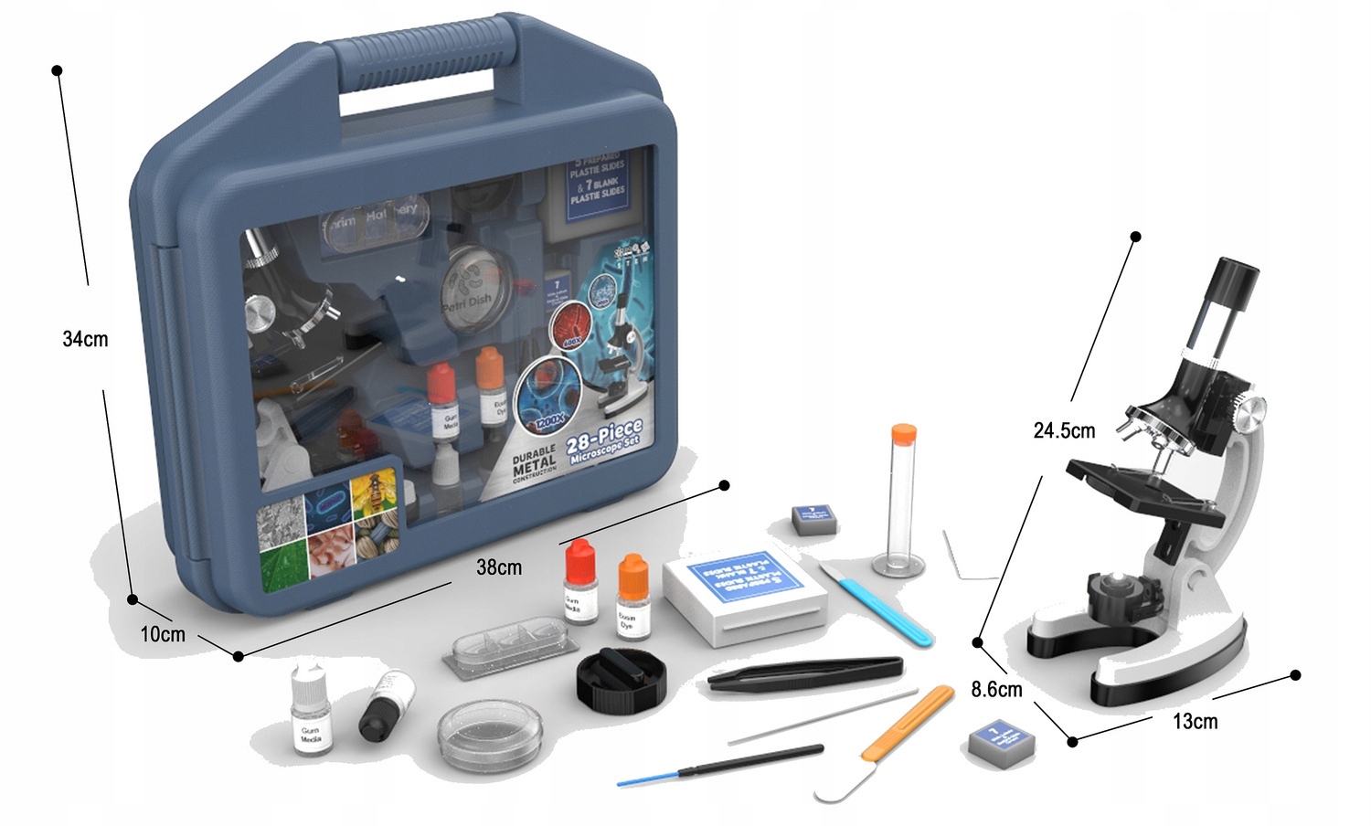 Представляем вам портативный микроскоп с 3-х градусным увеличением вместе с набором необходимых аксессуаров, которые познакомят молодого ученого с миром микробиологии и позволят наблюдать за мелкими объектами. Домашняя лаборатория позволит вашему ребенку открыть для себя, насколько увлекательным может быть мир науки.