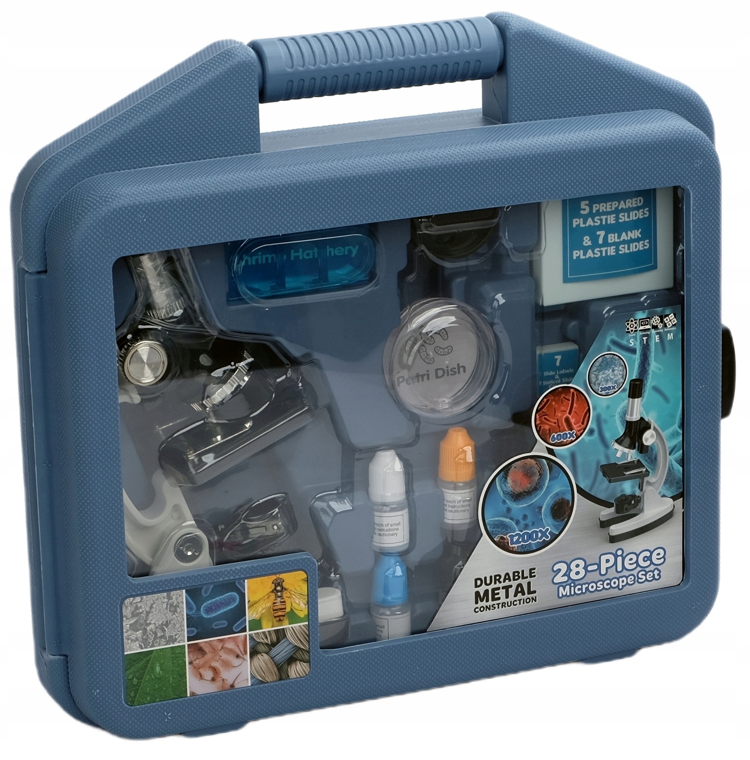 ДЕТСКИЙ МИКРОСКОП 1200x СВЕТОДИОДНАЯ ПОДСВЕТКА + БОЛЬШОЙ НАБОР АКСЕССУАРОВ В КОРПУСЕ
