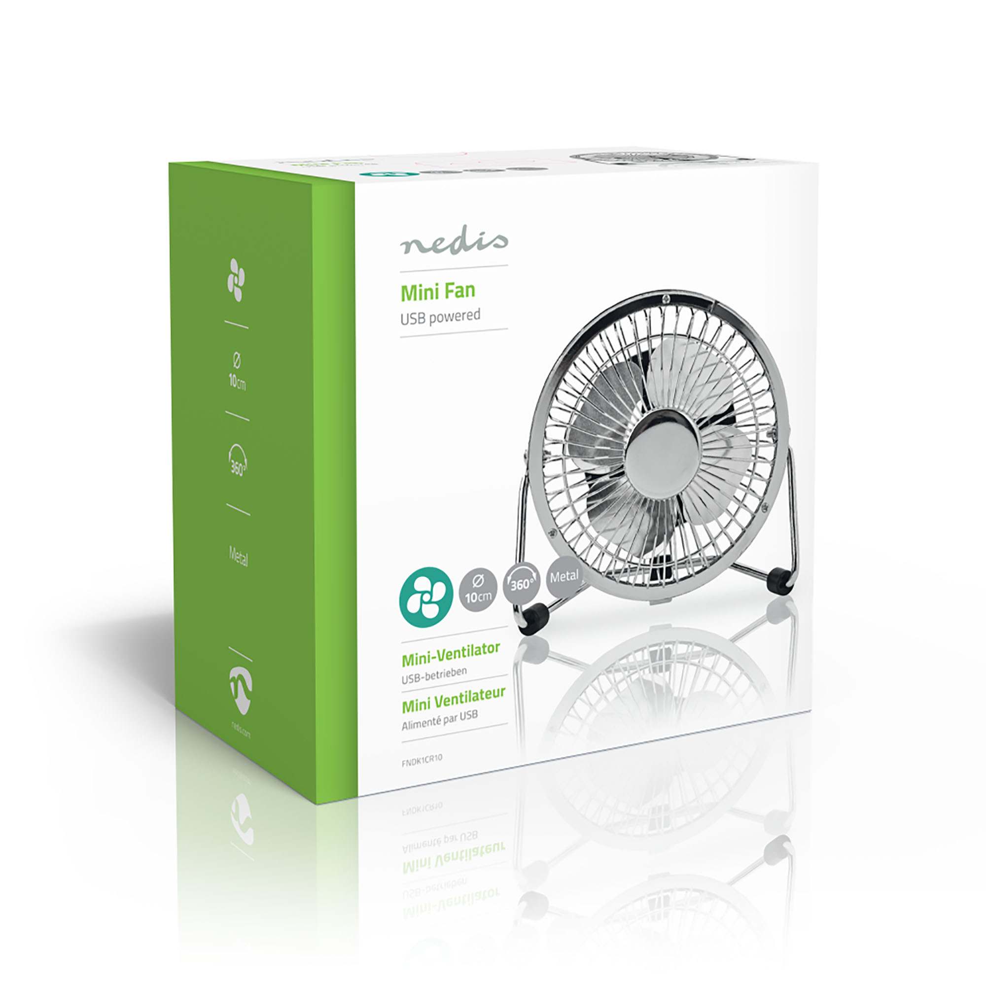 Металевий міні-вентилятор Nedis 10 см, живлення від USB, білий
