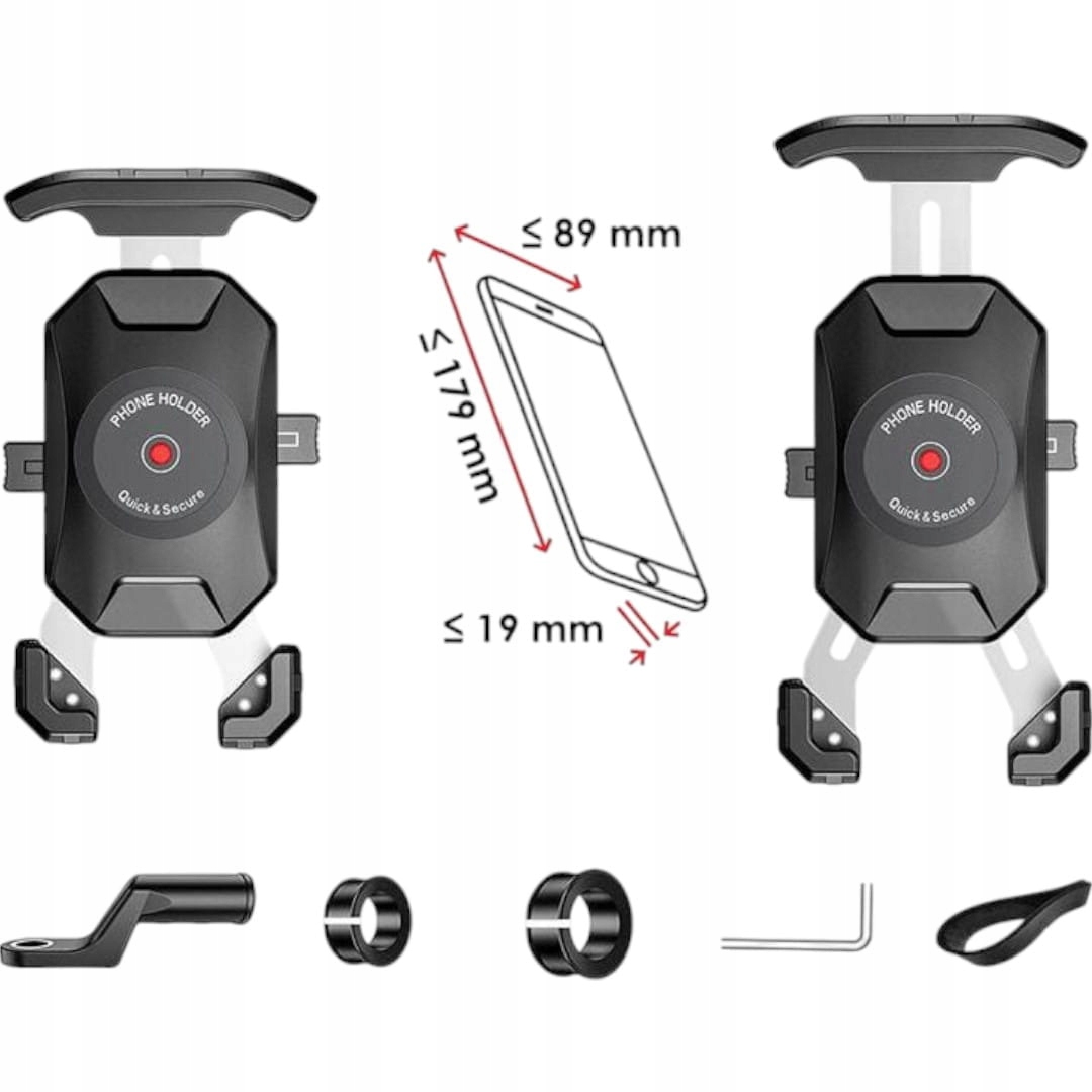 - Универсальность держателя позволяет устанавливать его на различные типы мотоциклов и подходит к различным моделям телефонов при условии совпадения их габаритов.