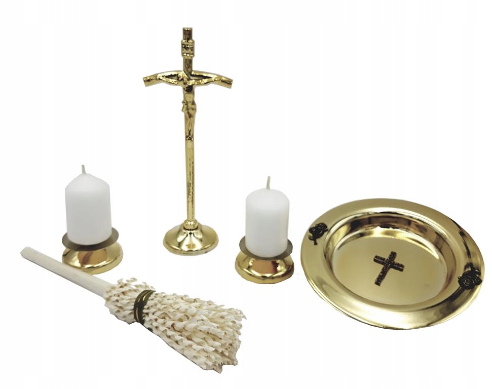 - Крест 17 см высотой и 4,5 см. > Две свечи со свечами высотой 7 см и шириной 4,5 см, сама свеча составляет 1,5 см