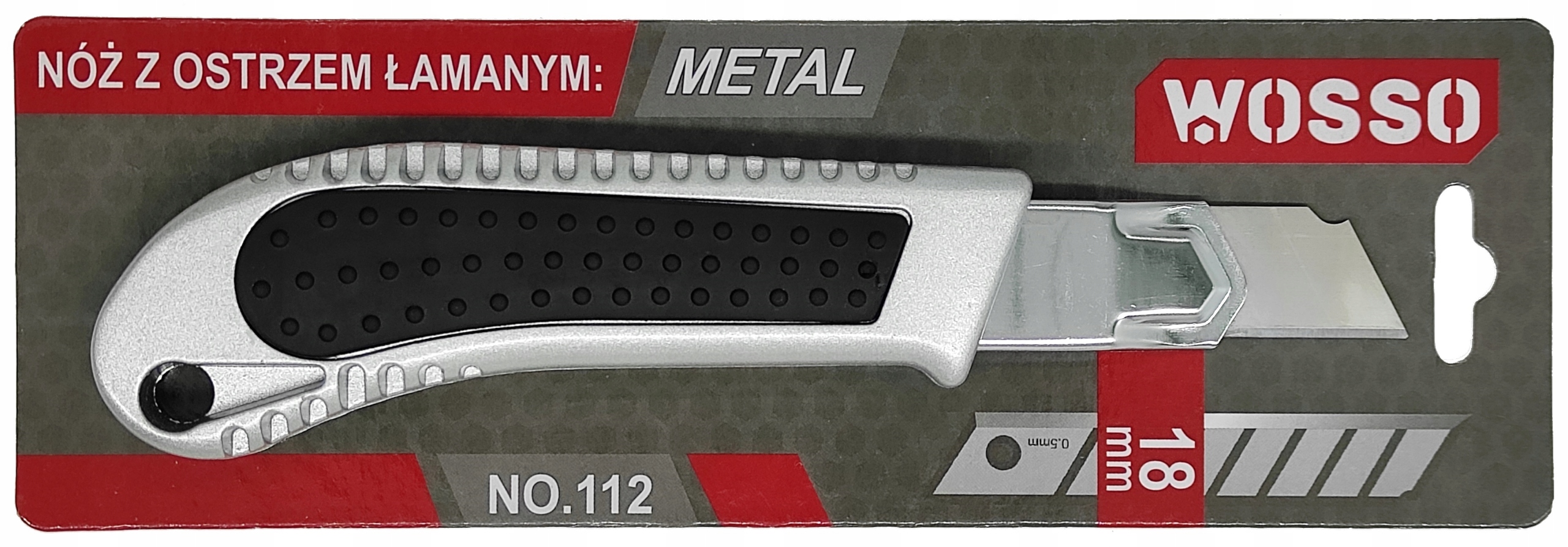 НОЖ ДЛЯ ОБОЙНЫХ МЕТАЛЛИЧЕСКИХ 18мм С ЛОМАТЫМ ЛЕЗВИЕМ 18мм 0,5мм №112