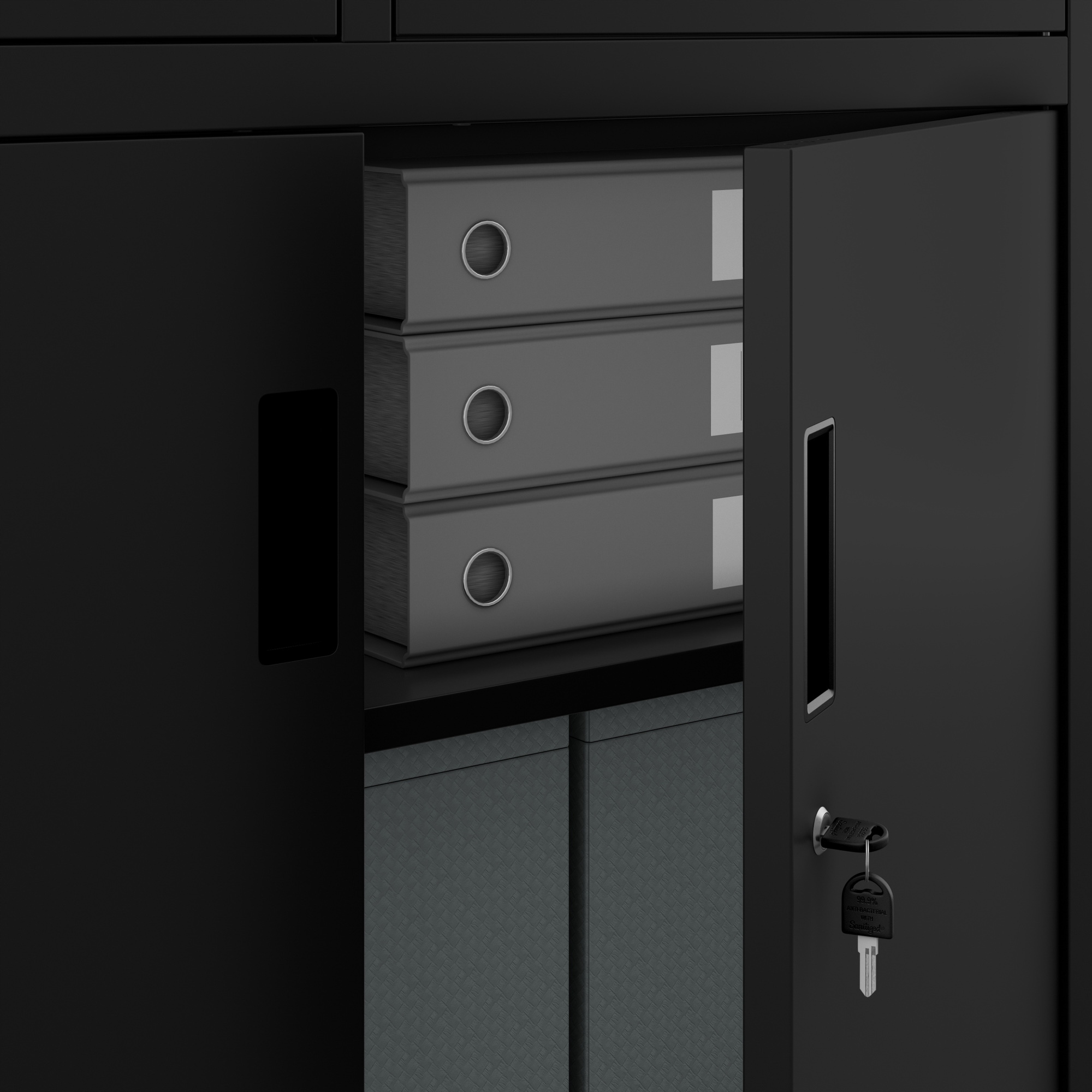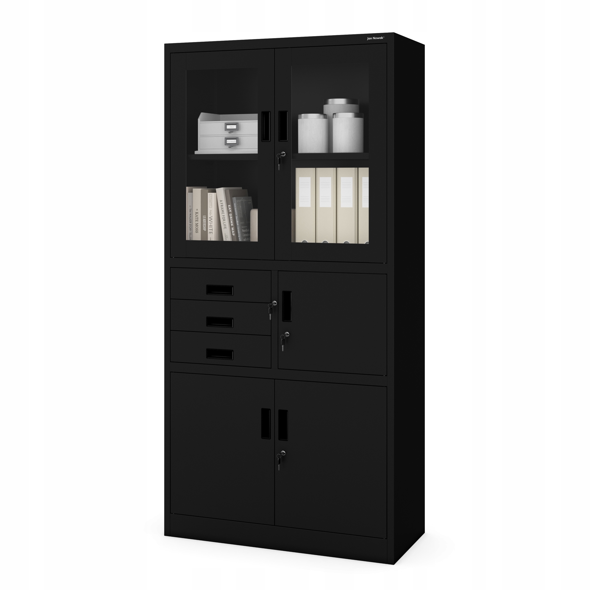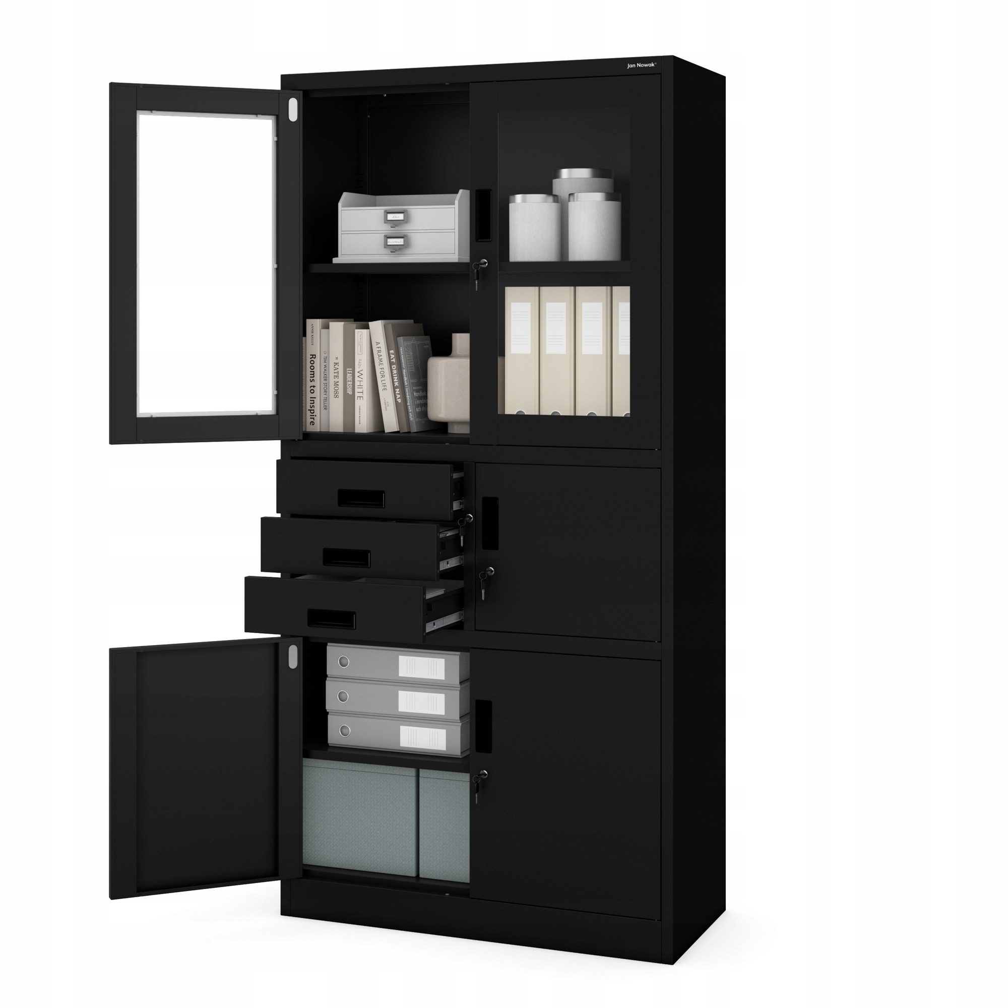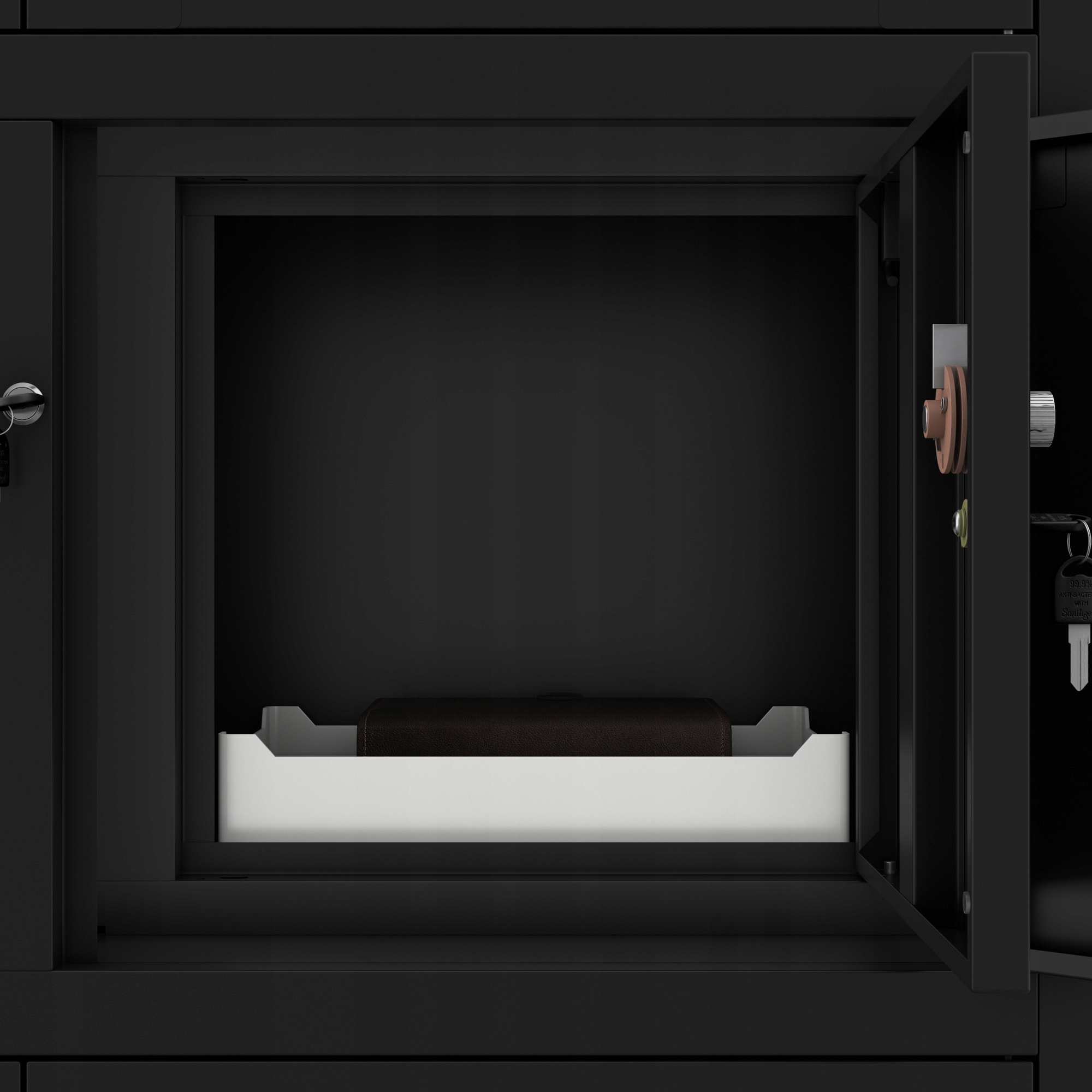 ✔ Многоуровневая защита - каждая часть гардероба (шкафы, ящики, дополнительный шкаф и безопасный) имеют отдельный, блокируемый замок на 3 очка. документы и предметы.