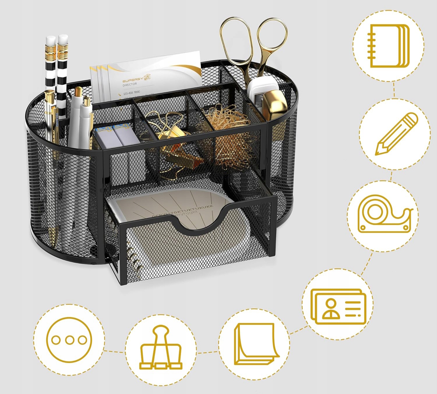 ✔ Металлический контейнер с отделениями и вместительным ящиком идеально подходит в качестве настольного органайзера.