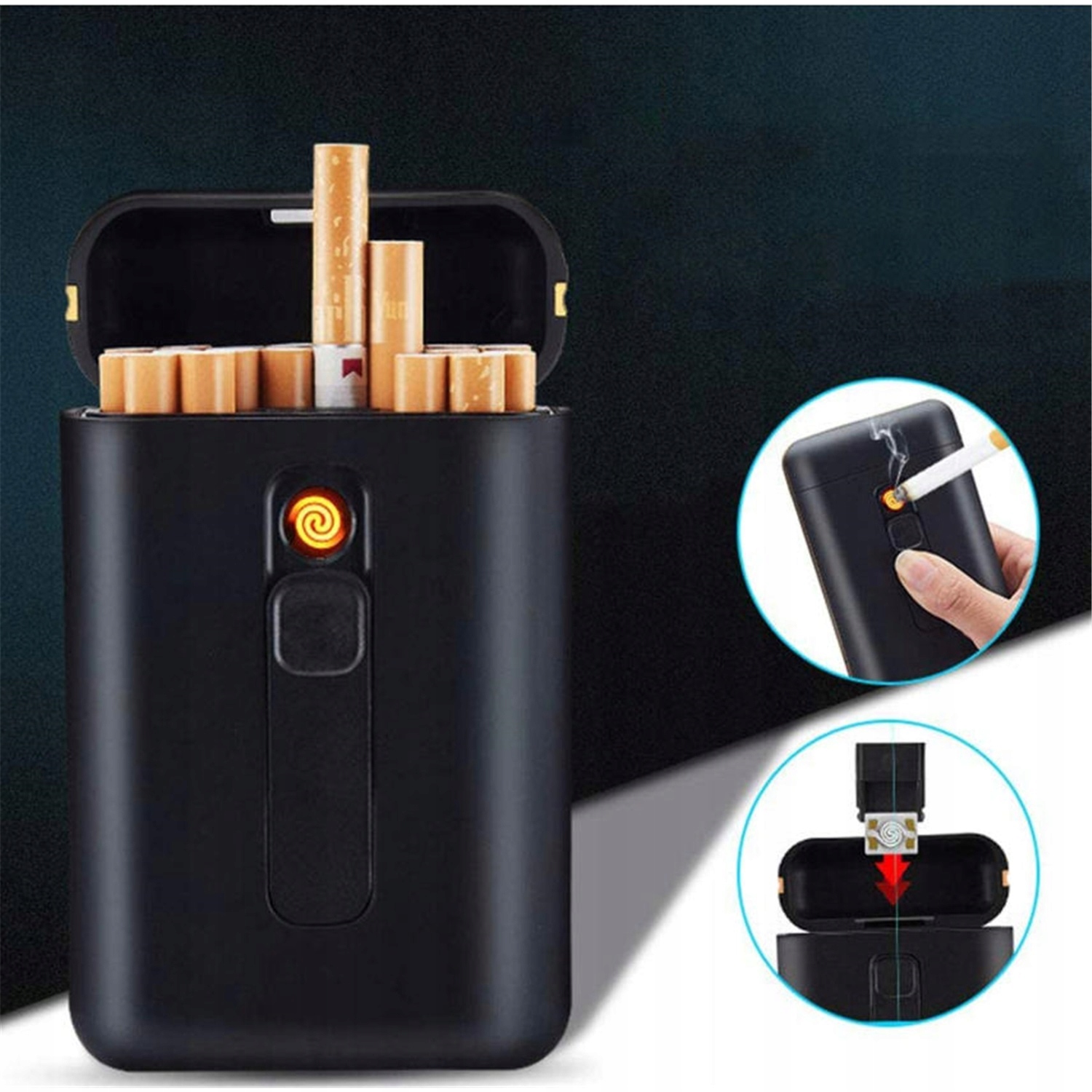 Наша коробка для сигарет — практичное и элегантное решение, позволяющее хранить до 20 стандартных сигарет. Благодаря встроенной зажигалке вы можете легко прикурить сигарету или сигару, нажав всего одну кнопку.
