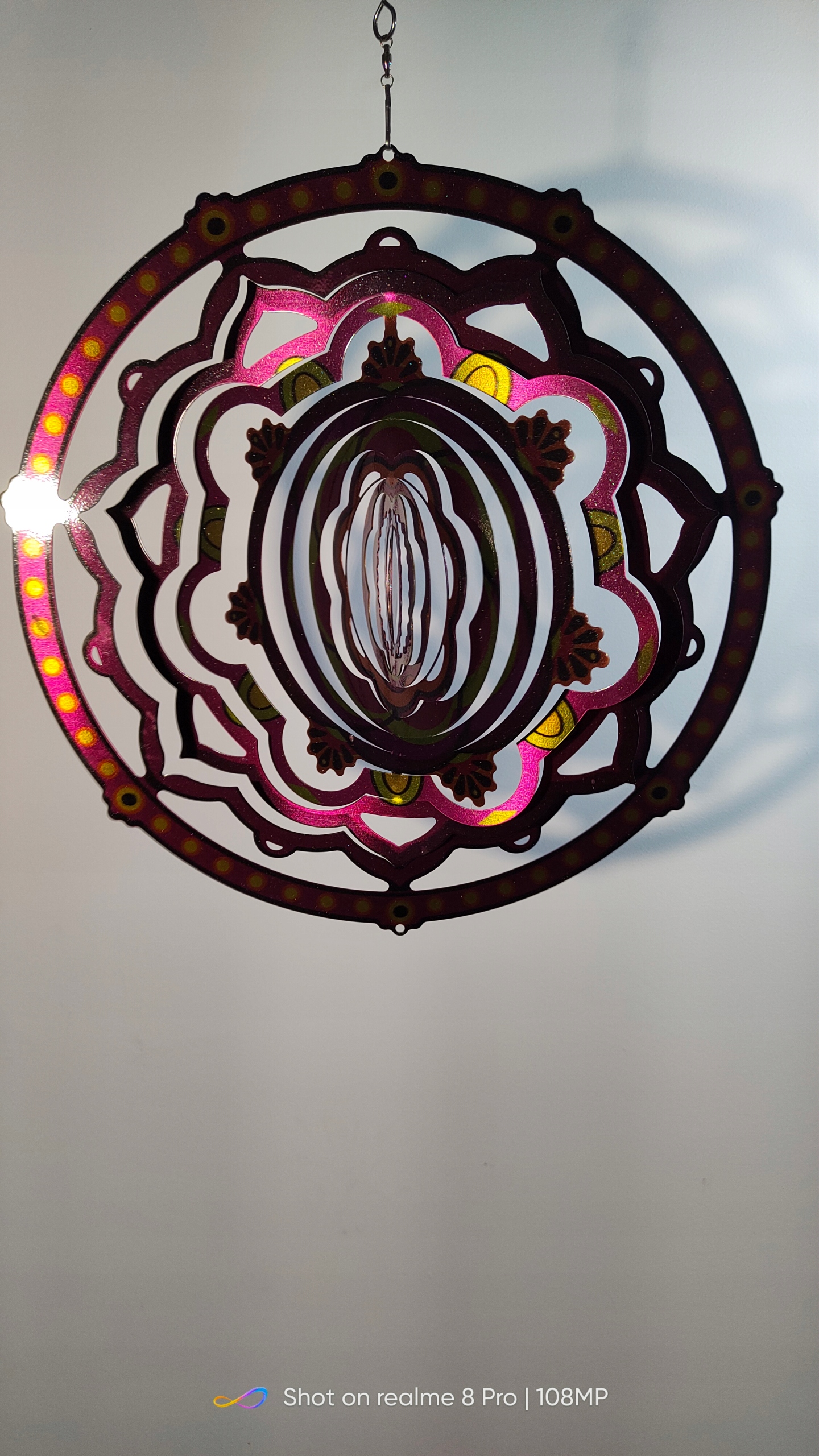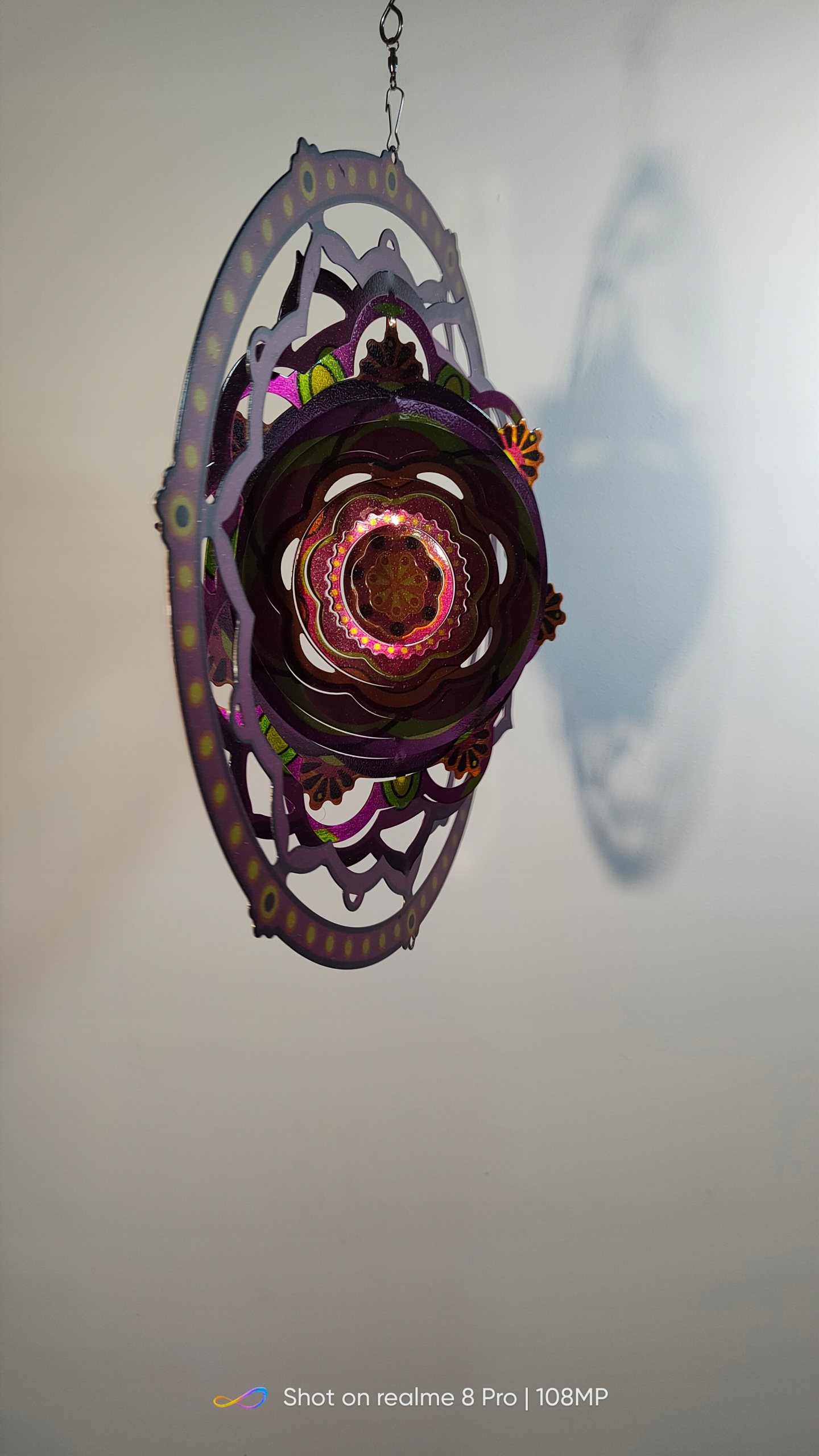 Украшение на ветру (или внутри - с помощью отдельно оплачиваемой) отражает падение света, а отражатели, прыгающие на отдельные элементы, создают нереальную иллюзию трехмерной и движения .