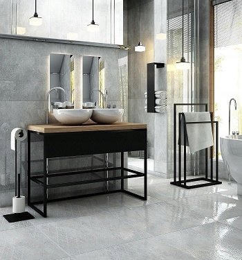 Под столешницей крепится металлическая перекладина, служащая вешалкой для полотенец.