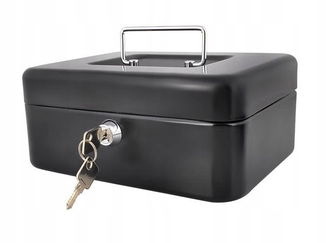 Кассета изготовлена из металла. У него удобная ручка, благодаря которой мы можем его носить. Замок с 2 ключами в комплекте, подходящими только к одному ящику, гарантирует, что его не откроют нежелательные люди.