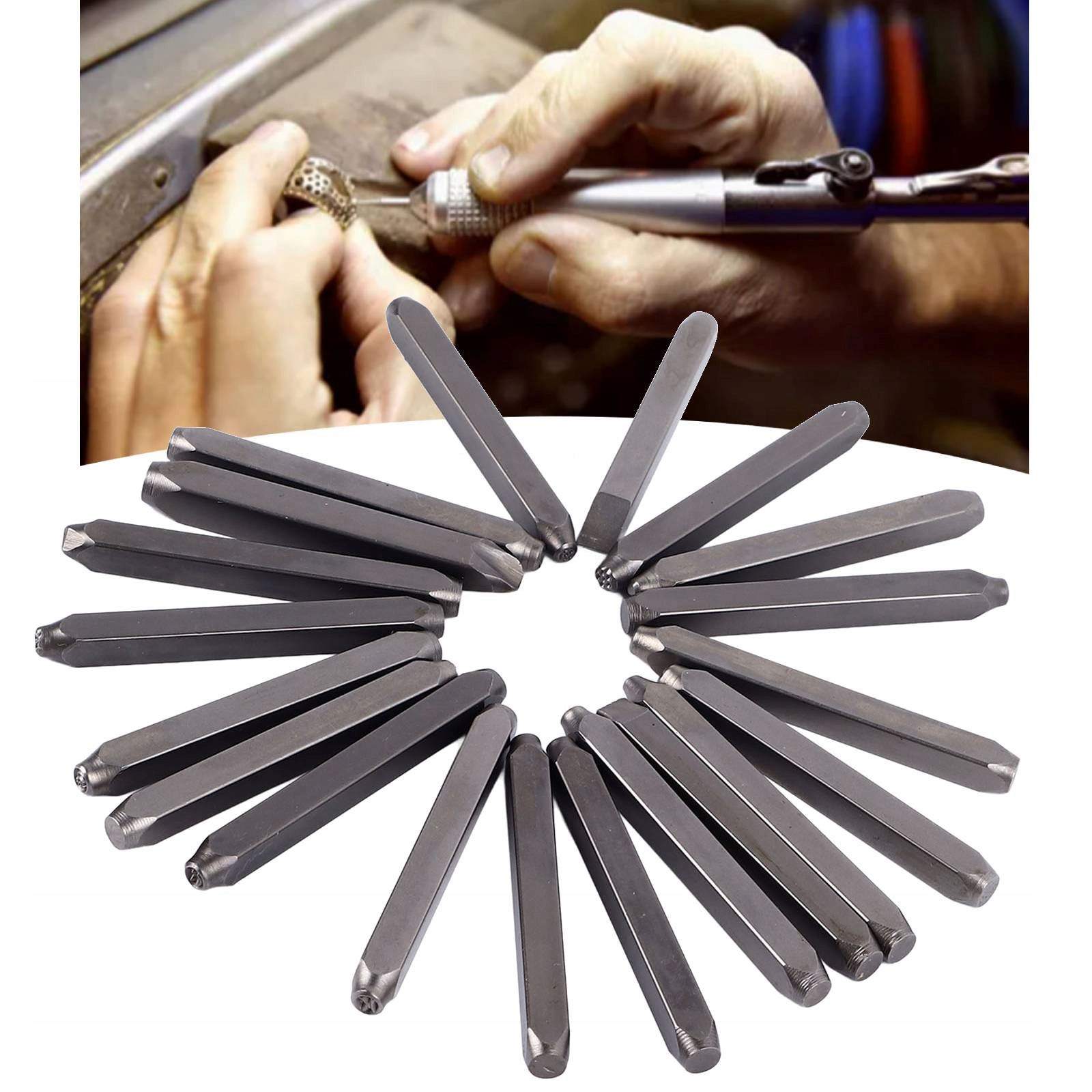 4. Удобная ручка: в комплекте из 20 металлических ювелирных штампов, он имеет эргономичную ручку, которая обеспечивает удобную сцепление и точный контроль во время гравировки.