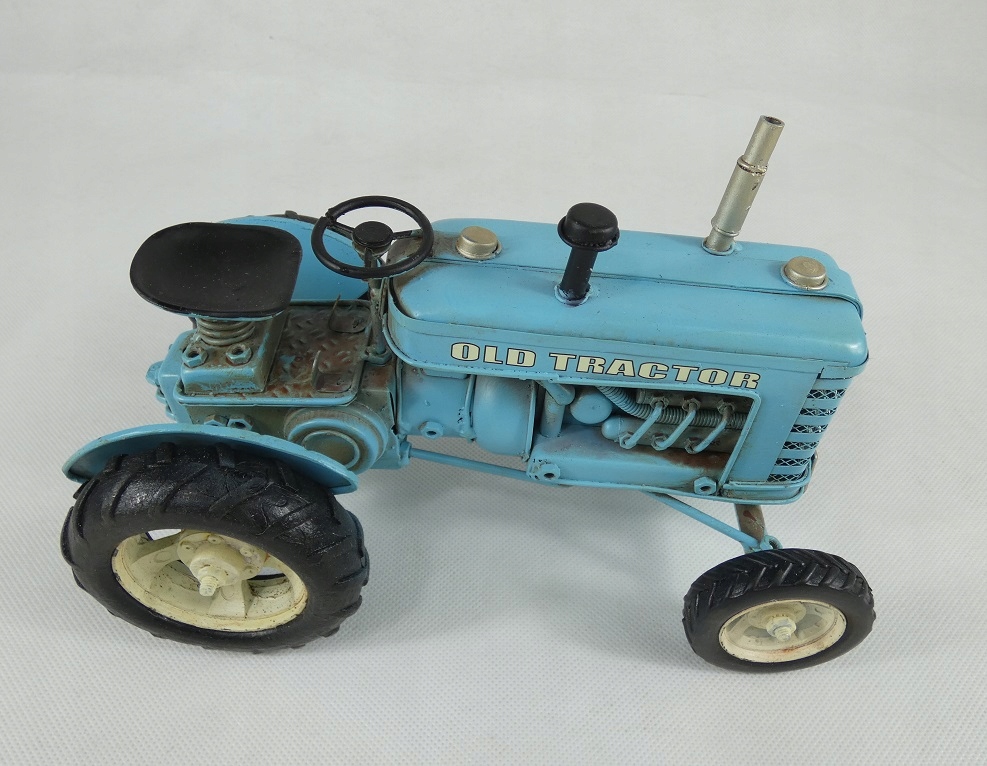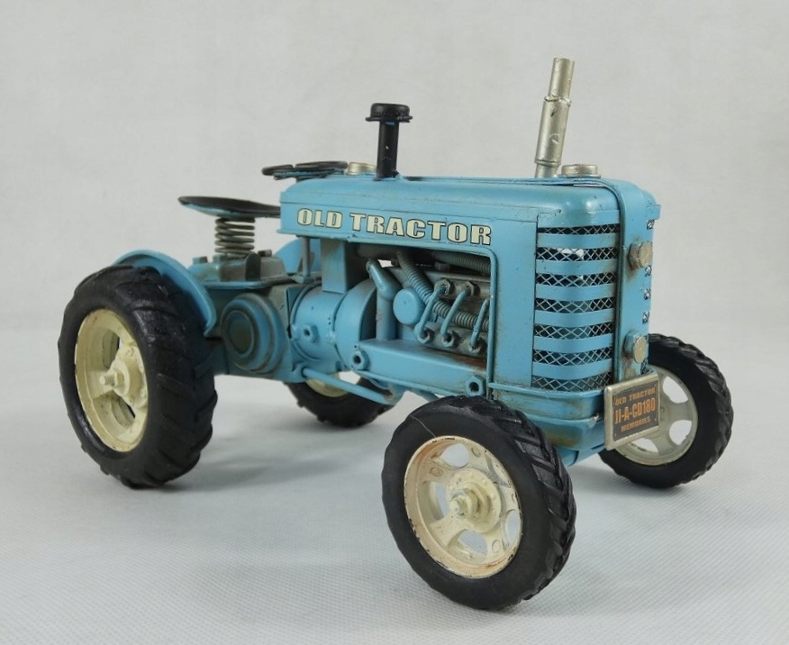 Металлический синий тракторный автомобиль старый ретро -трактор