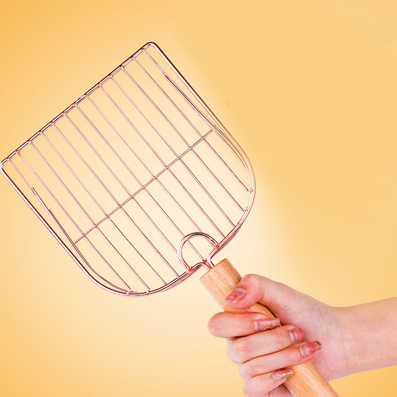 Металлический совок для кошачьего туалета с тонким отверстием и эффективной фильтрацией Подъемник для кошачьих фекалий с деревянной ручкой