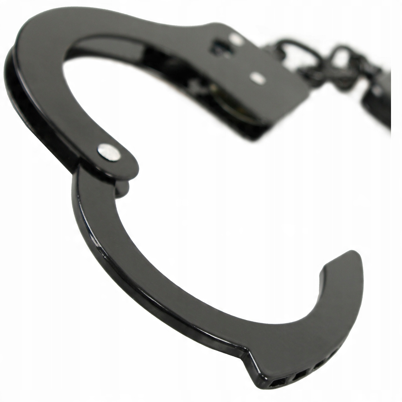 Длина цепи ограничивает свободу движений конечностей человека, находящегося в наручниках, а большое отверстие подходит для запястья даже хорошо сложенного человека.