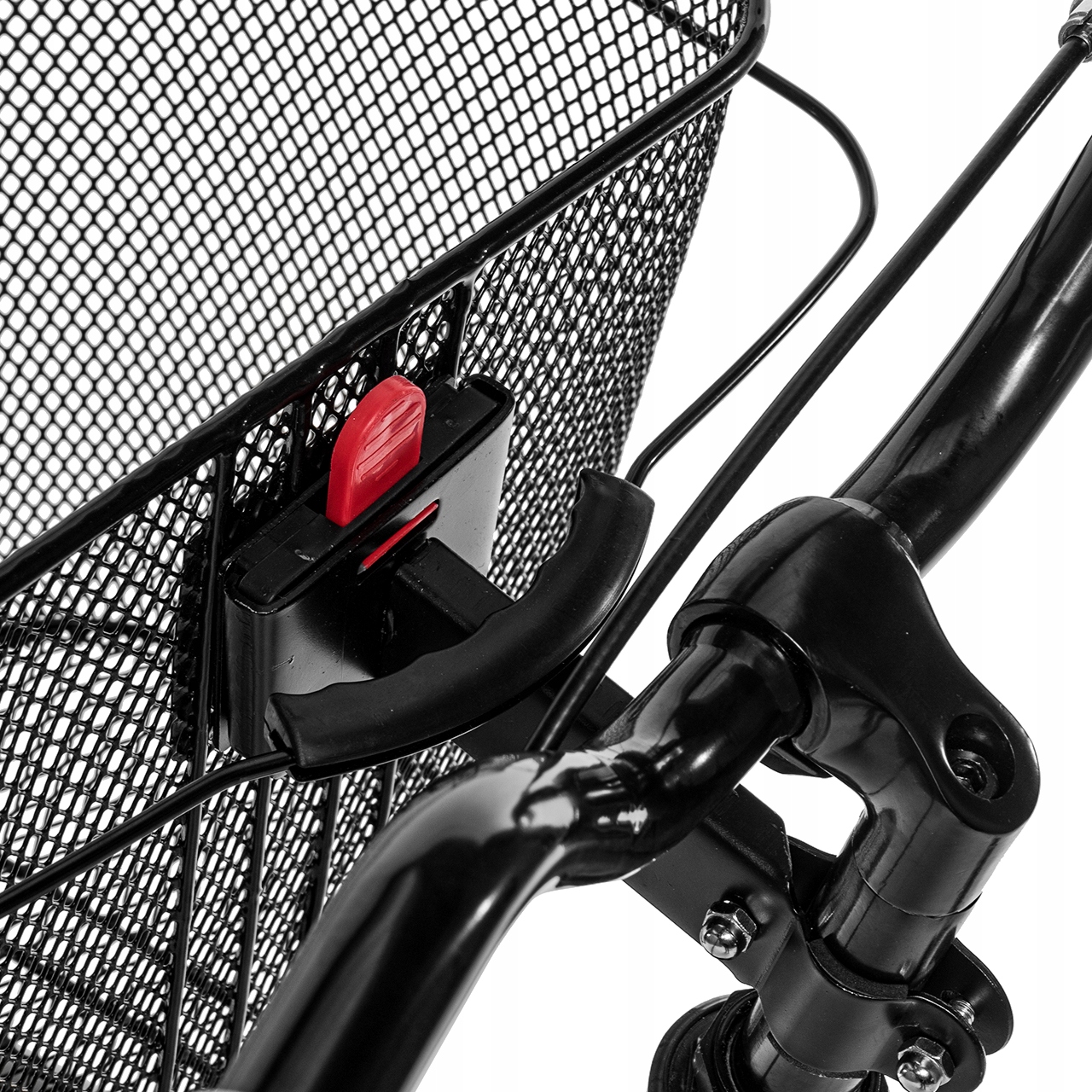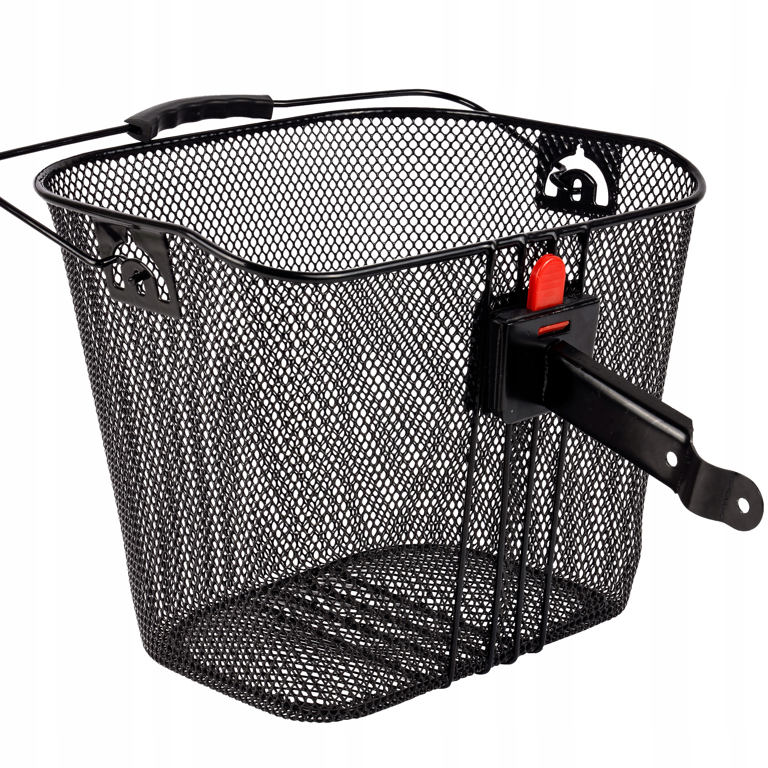 МЕТАЛЛИЧЕСКАЯ КОРЗИНА ДЛЯ ПЕРЕДНЕГО ВЕЛОСИПЕДА С РУЧКОЙ-ЩЕЛЧКОМ, ВМЕСТИТЕЛЬНАЯ, ЧЕРНАЯ