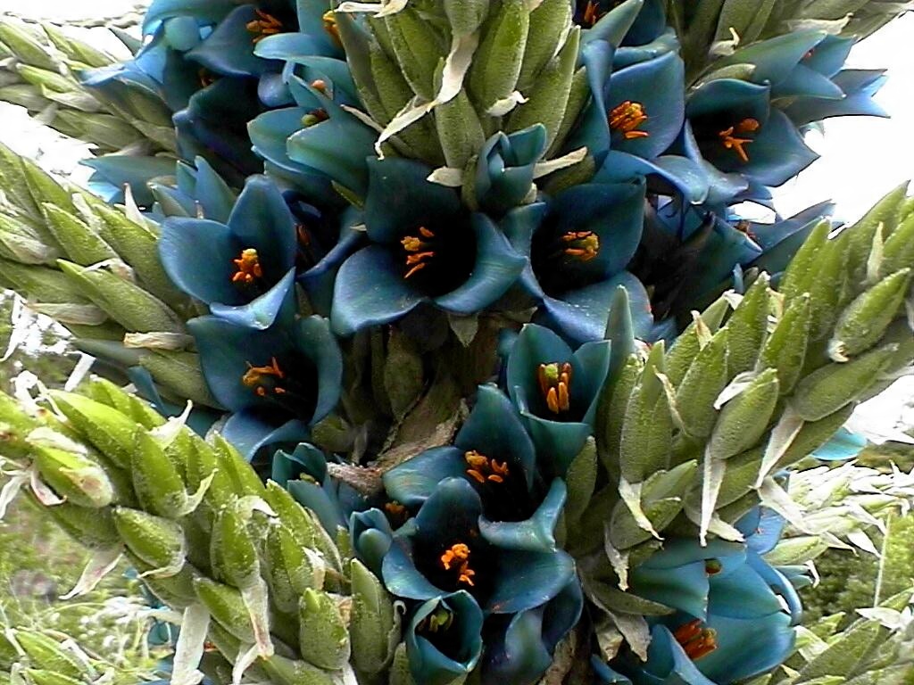 Необычный вид из семейства бромелиевых, образующий розетки листьев и эффектные, огромные соцветия. Родом из Чили, растет на каменистых щебнях. Это многолетнее растение. Его соцветие вырастает до 2 метров. Состоит из мелких цветков красивой, необычной окраски, переливающейся оттенками синего.Рекомендуется для выращивания в горшках. Летом может стать украшением наших террас, садов и балконов.