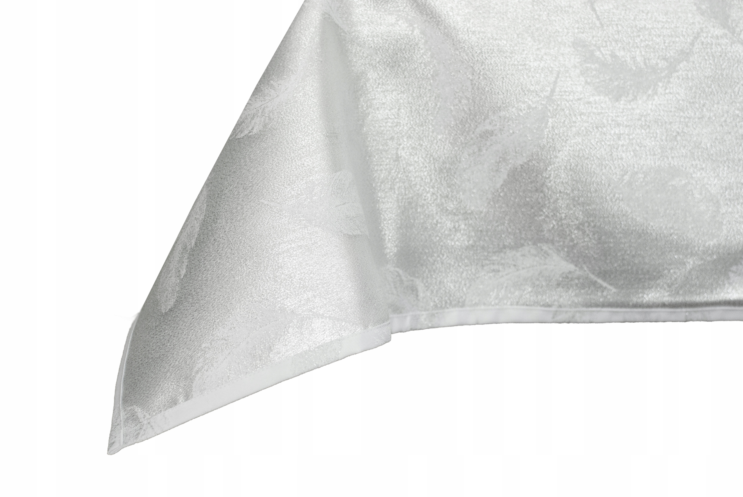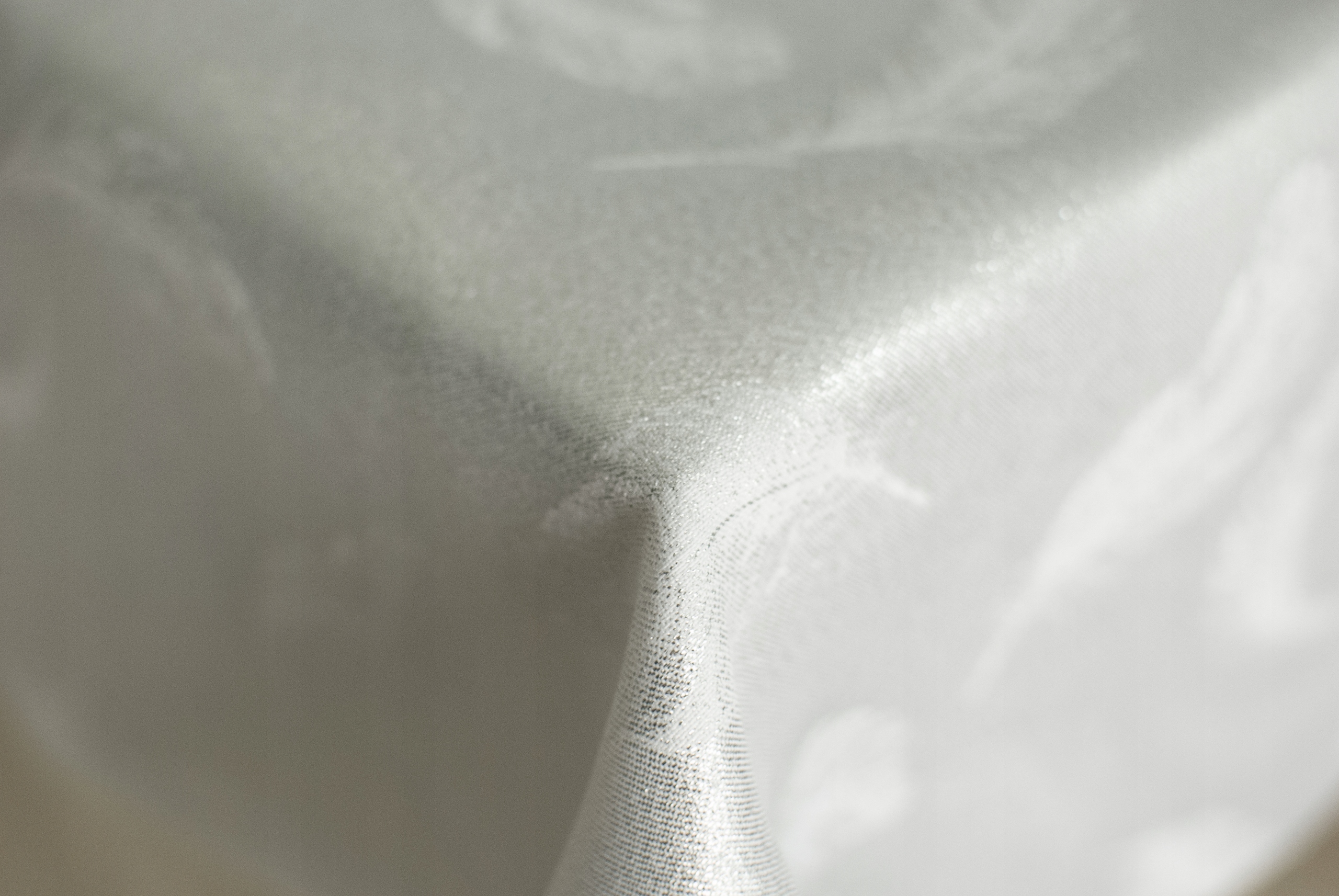 Крупный план левой (очень блестящей) стороны ткани. Двусторонняя скатерть, обе стороны устойчивы к загрязнениям.