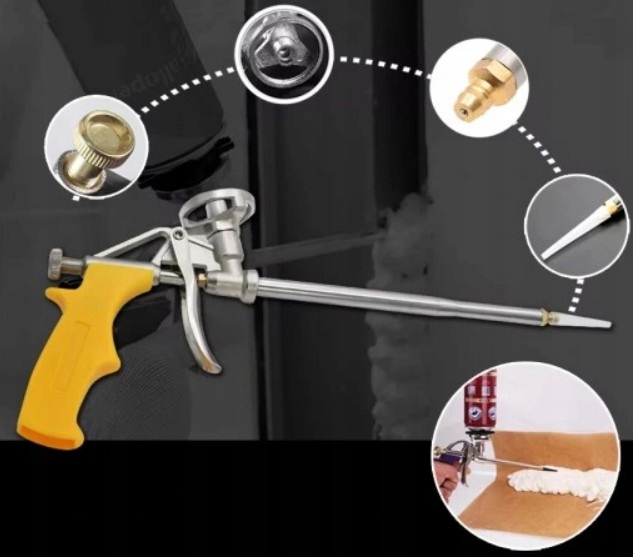 Использование: примерно в 30 секунд Положите банку пены. Приверсь к банке с пистолетом. Нажмите на триггер, а затем регулируйте поток пены с помощью регулировочного винта в задней части пистолета. С более длинными разрывами блокируйте пистолет с помощью регулировочного винта и встряхните пену перед следующим использованием.