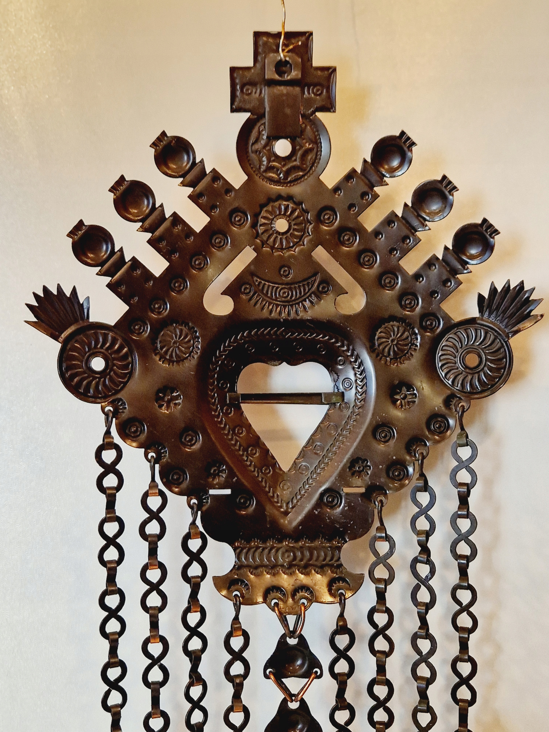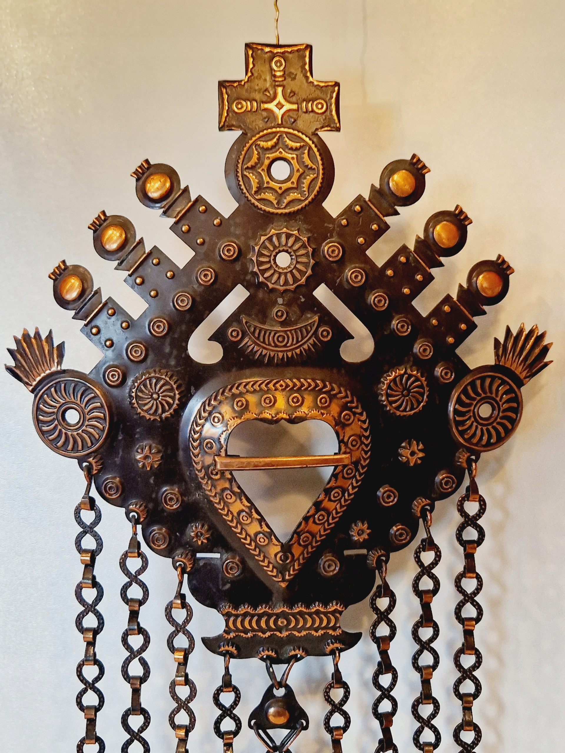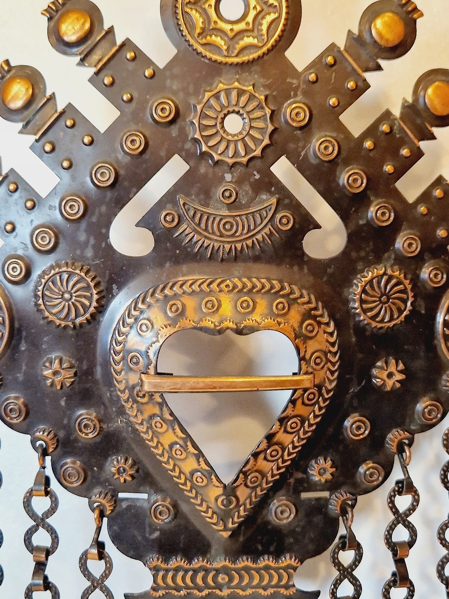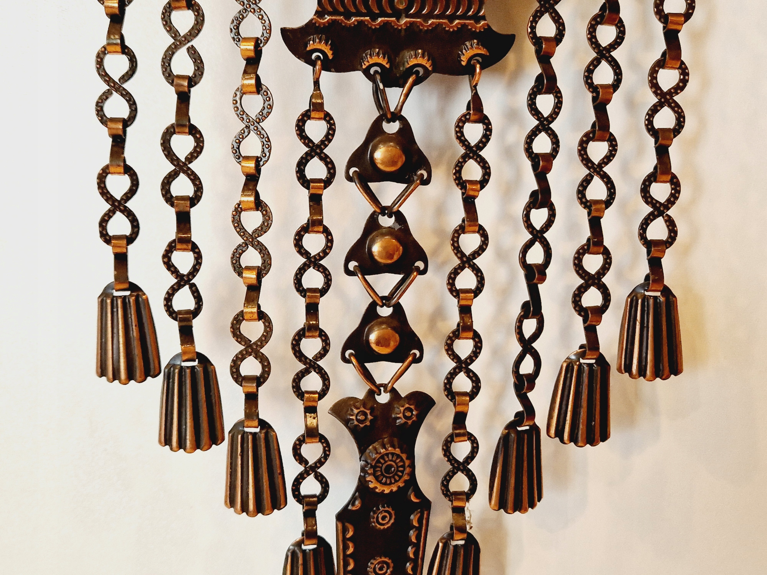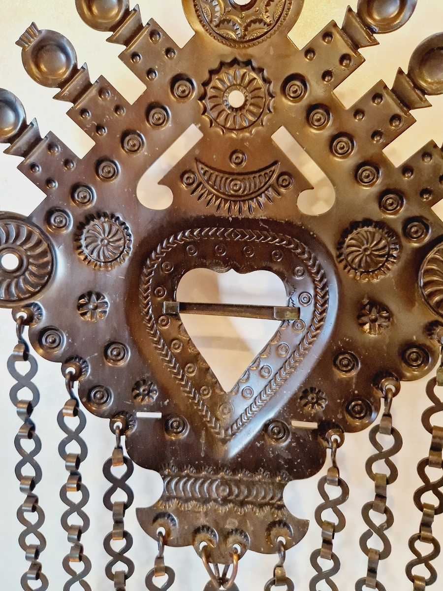 "Традиционные горские запонки, восходящие к готическим прототипам, украшены солнечными кругами, полумесяцами, звездами, а также зооморфными и геральдическими мотивами, особенно культовой головой хищной птицы, всегда видимой в профиль."< /п>
