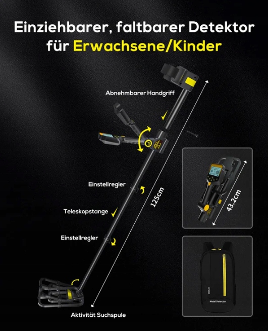 - 【Взрослые и дети】 Регулируемый размер, подходящий для взрослых и детей. Регулируется от 66 см до 125 см. Подходит для приключений на открытом воздухе, поиск сокровищ на пляже и семейных играх