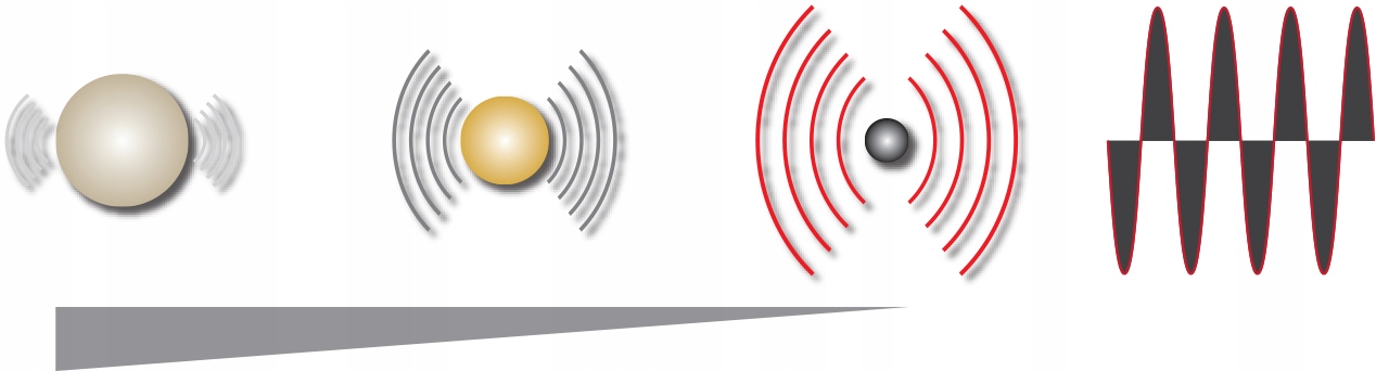 На диаграмме ниже в упрощенном виде показано, как определенные частоты лучше подходят для поиска конкретных целей; например, низкая частота (5 кГц) более чувствительна к объектам с высокой проводимостью (например, крупным серебряным предметам), а более высокая частота (20 кГц) более чувствительна к объектам с низкой проводимостью (например, маленьким золотым самородкам или железу).