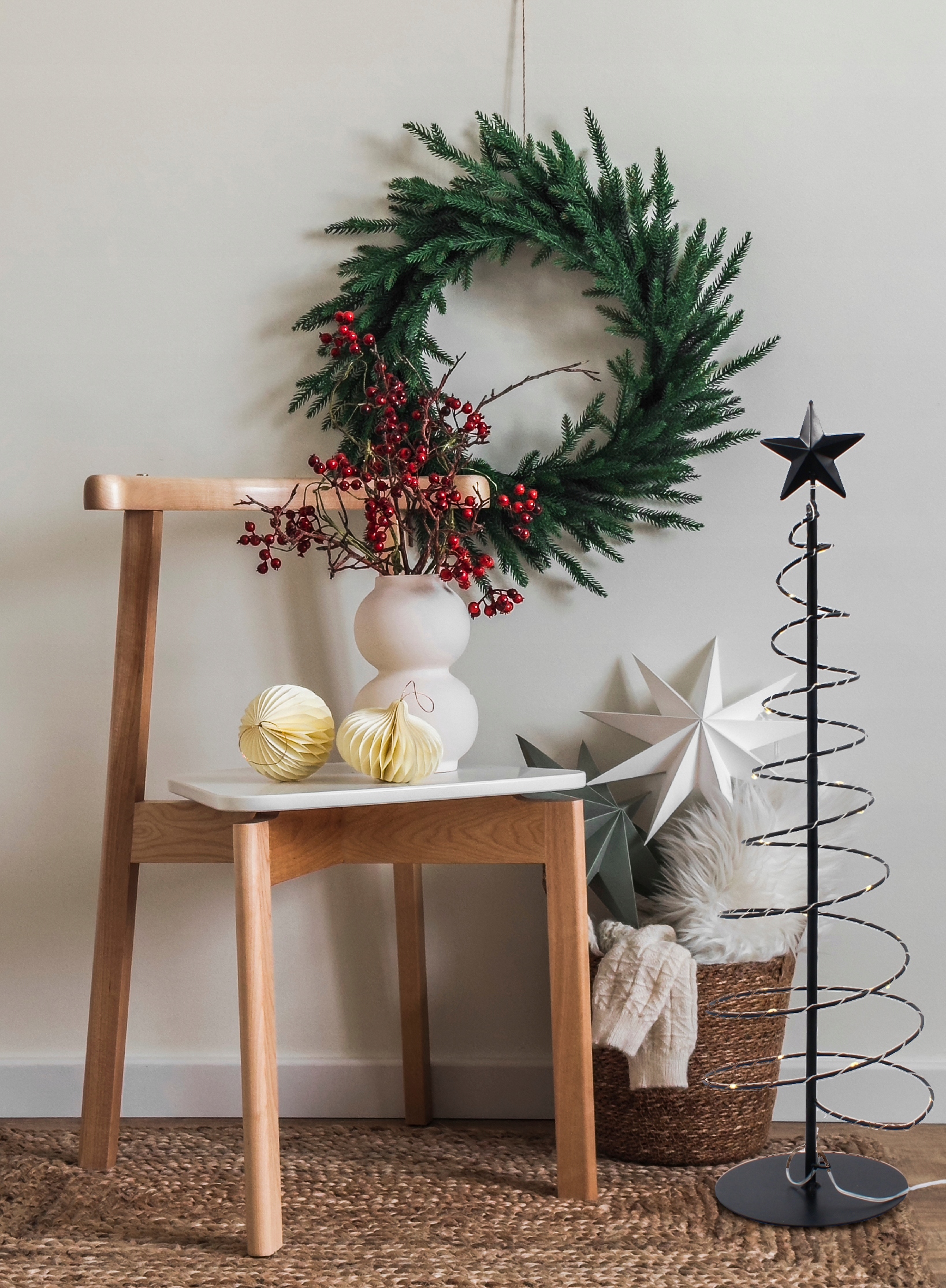 METALOWA CHOINKA CZARNA wys. 60 CM LED NA BATERIE