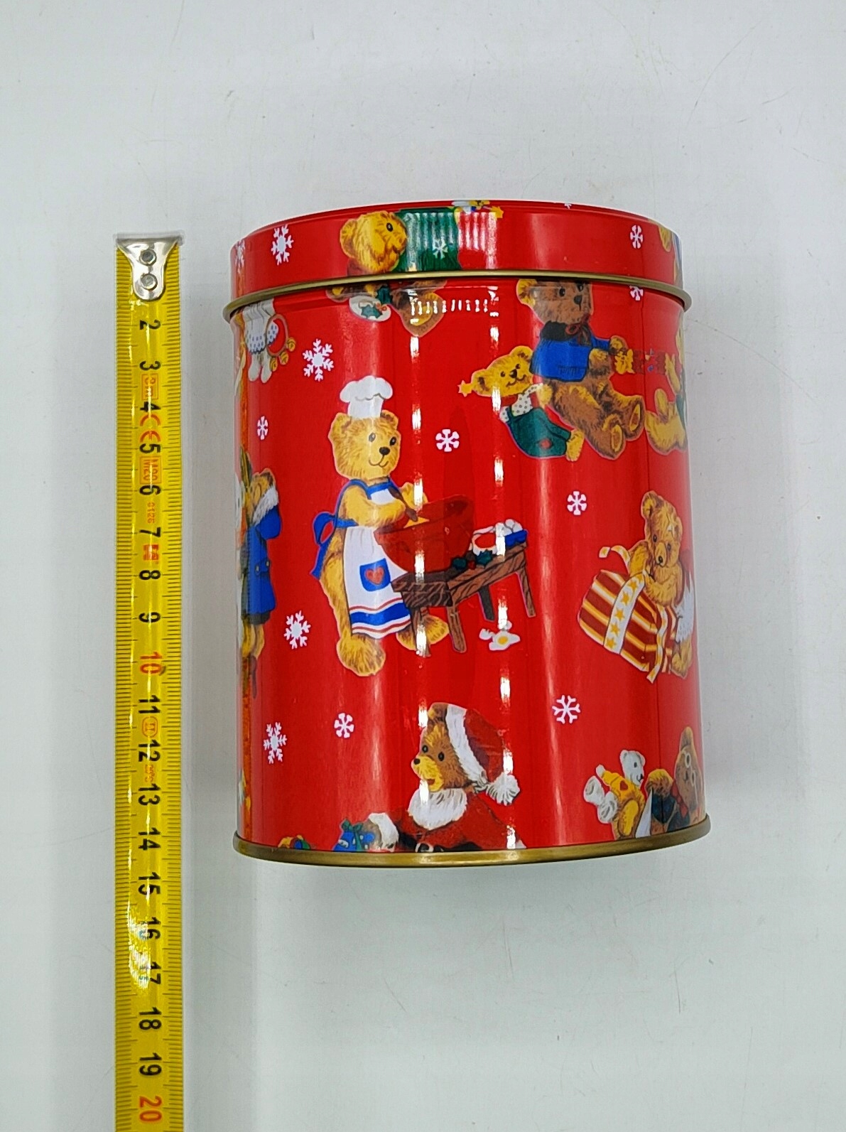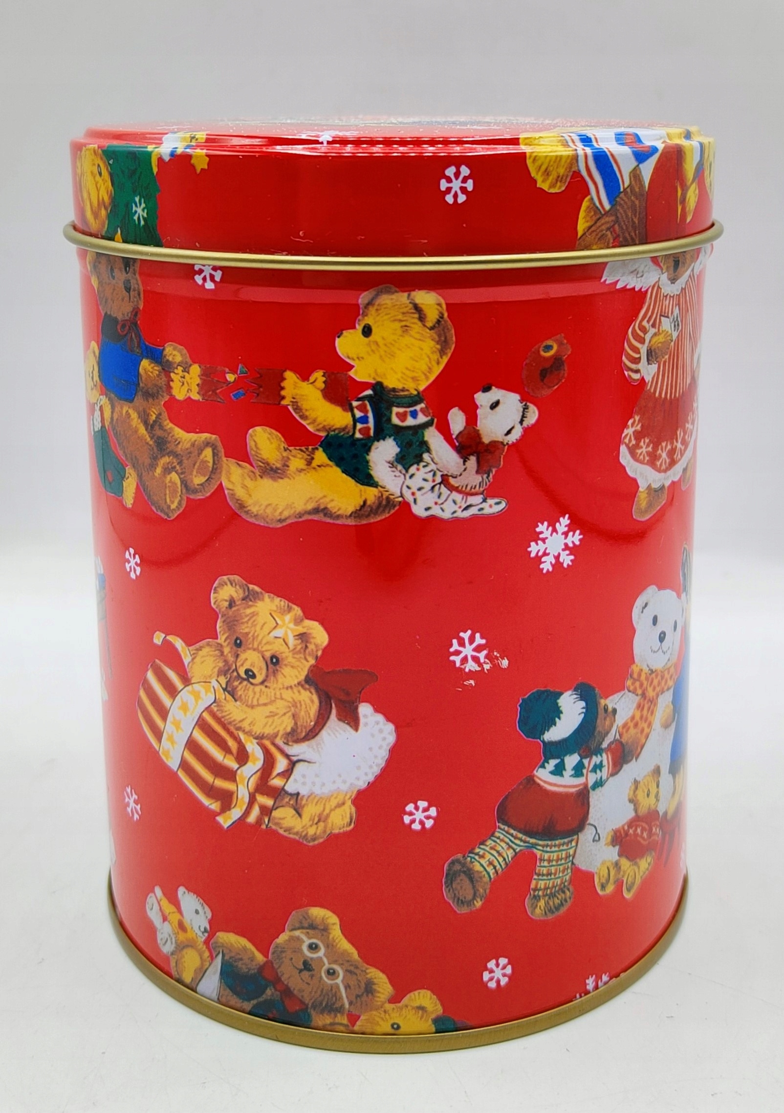 Металлическая рождественская банка - отлично - повсюду рождественские плюшевые мишки (красная). У меня есть еще одна из той же коллекции (зеленая) на другом аукционе - она немного меньше и такая же красивая!