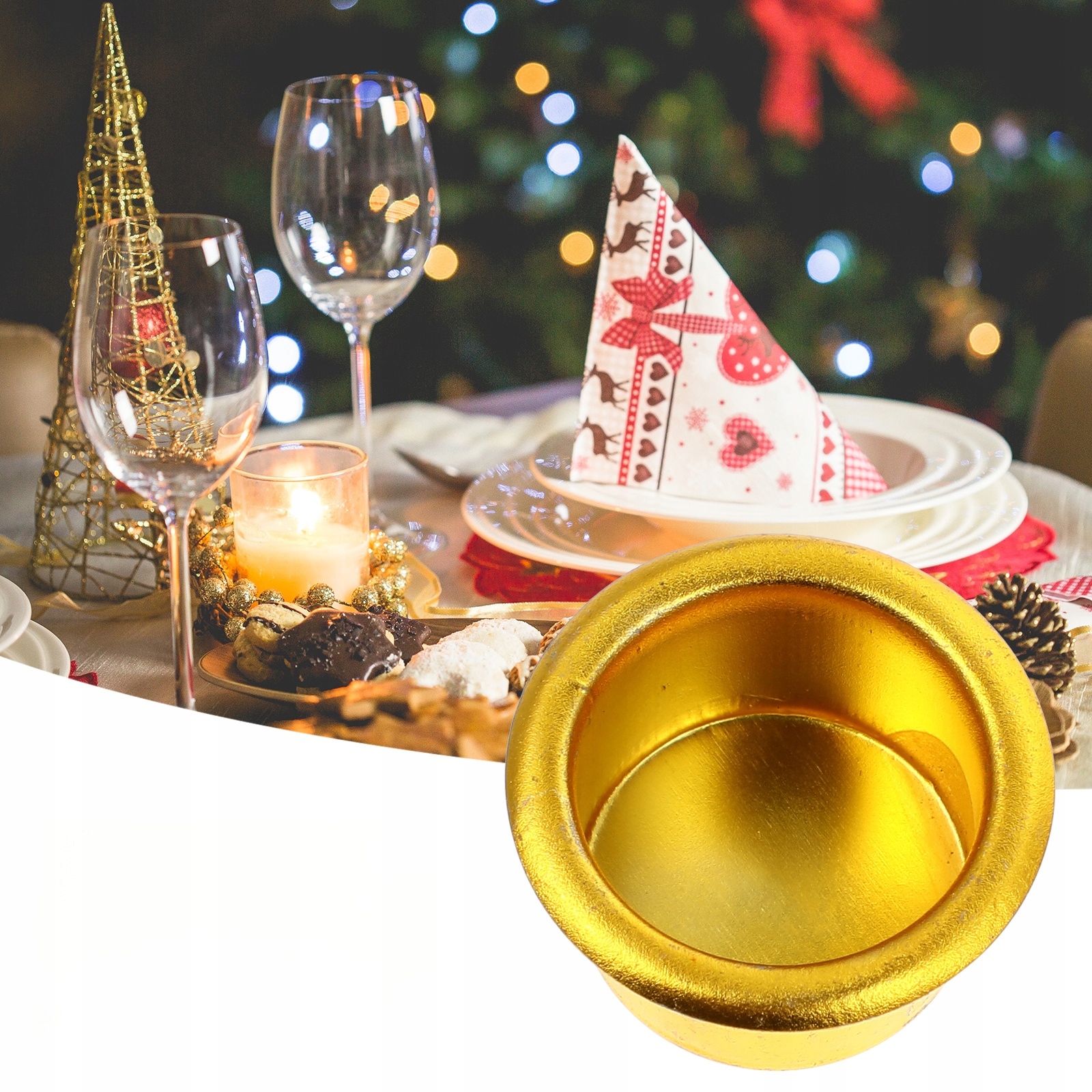 METALOWE KUBKI NA ŚWIECZKI ELEGANCKIE OZDOBY DO