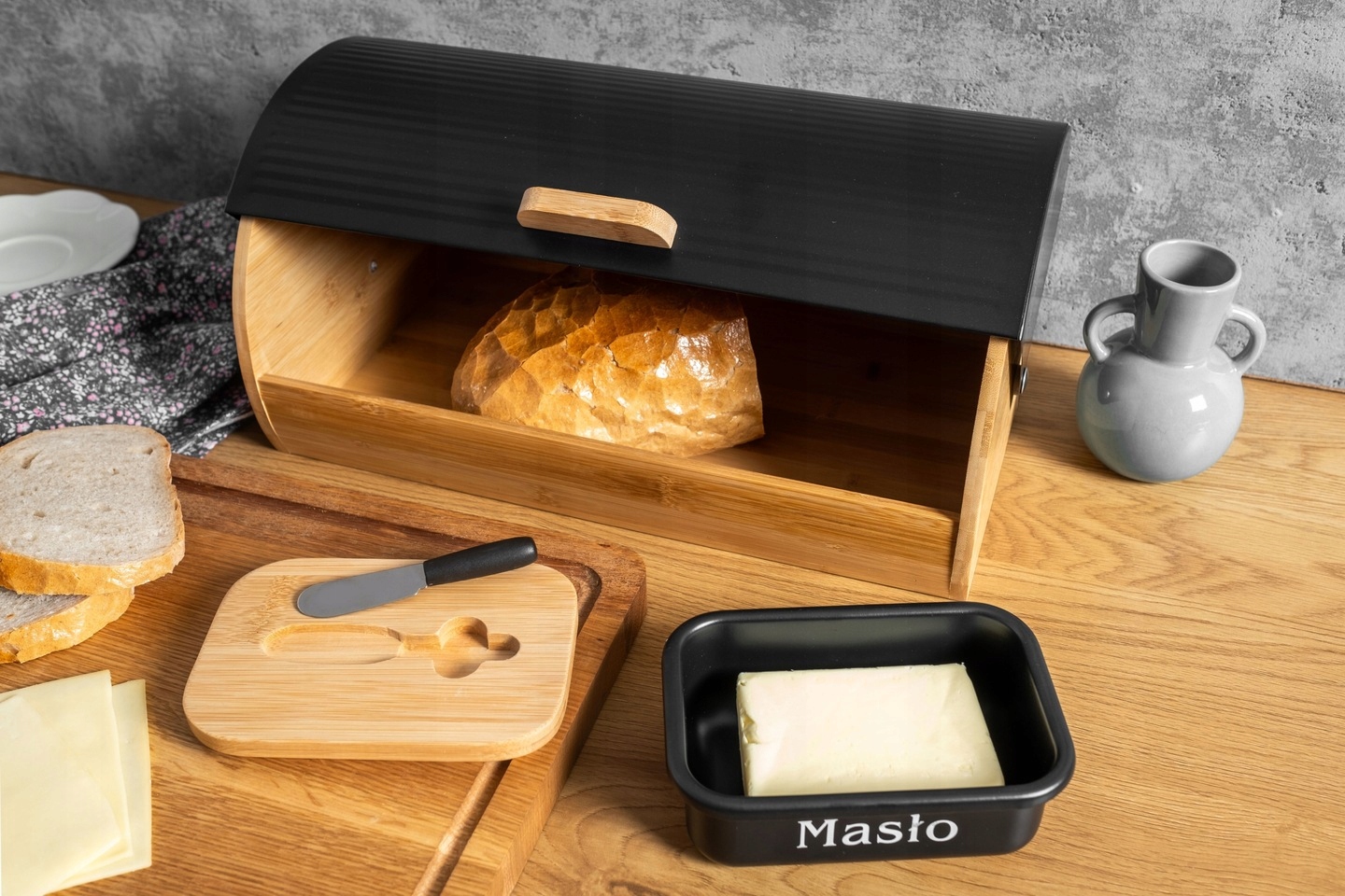 Металлический контейнер черного масла с бамбуковой крышкой + нож