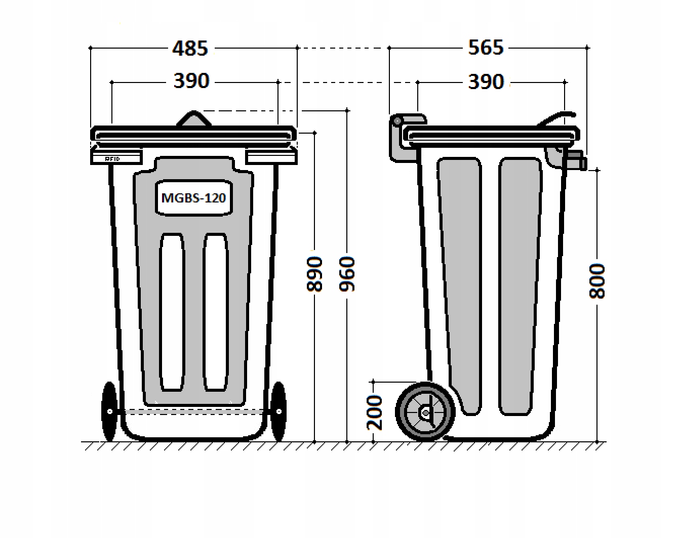 МГБС-120 соответствует требованиям стандарта EN-840, конструкция контейнера и крючков позволяет опорожнять его всеми специализированными транспортные средства (мусоровозы), оборудованные системой выгрузки гребенки. ( + RFID система )