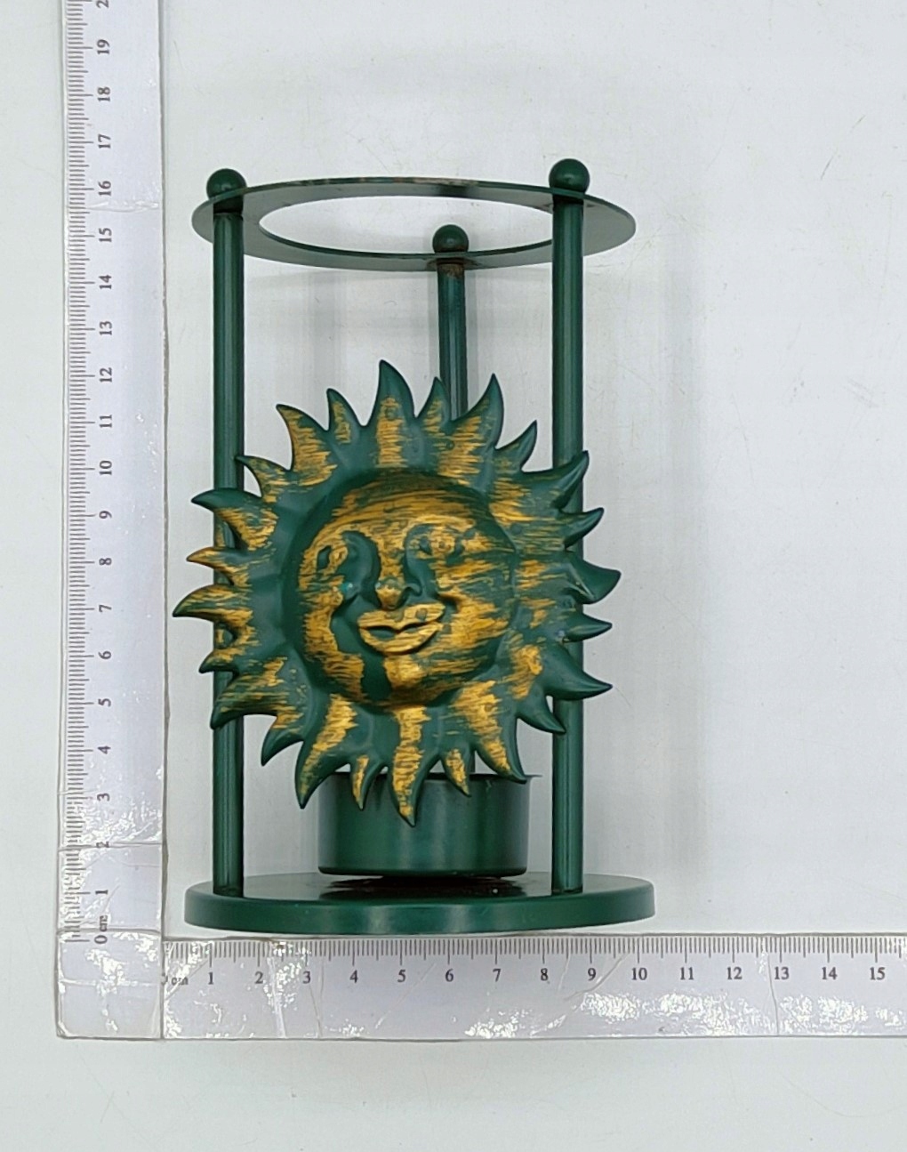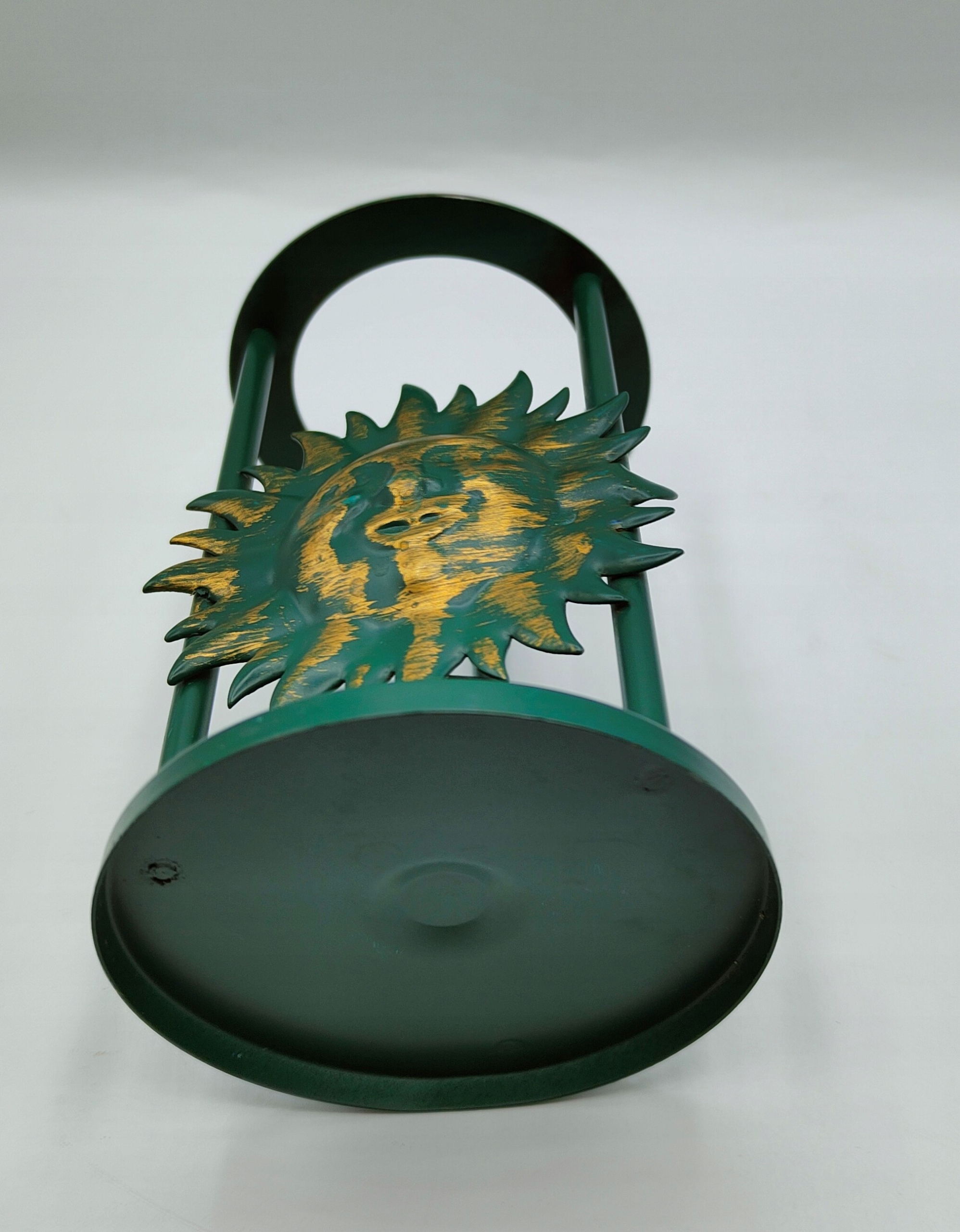 Подсвечник металлический СОЛНЦЕ с личиком, зелено-золотой