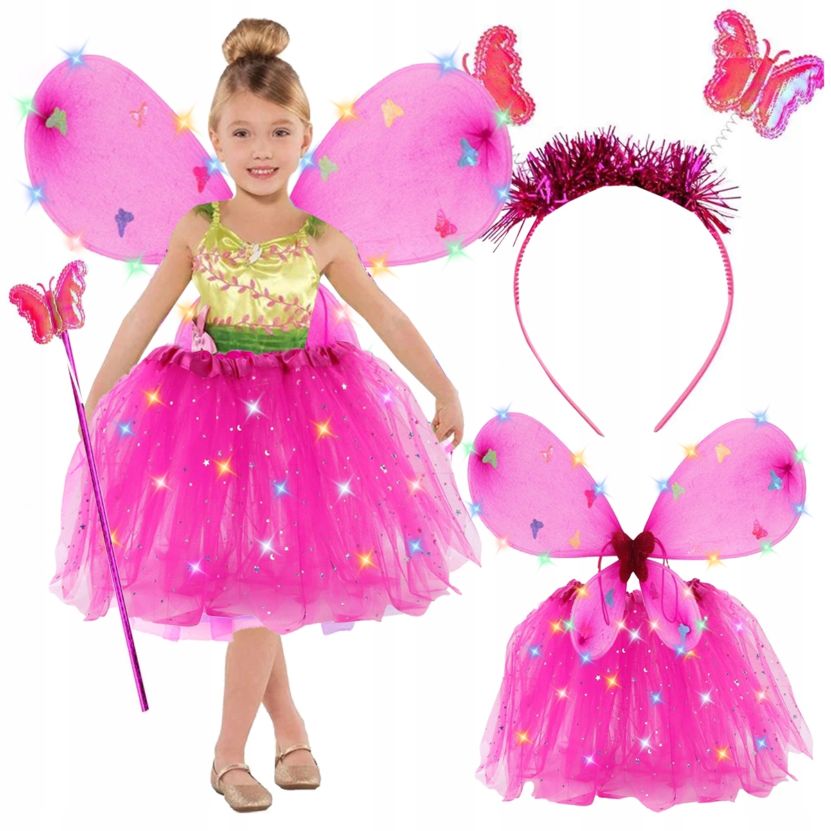 СВЕТЯЩИЙСЯ НАРЯД: КОСТЮМ ФЕИ-БАБОЧКИ ДЛЯ ОБСУЖДЕНИЯ + ПОВЯЗКА НА ГОЛОВУ + ПАЛОЧКА