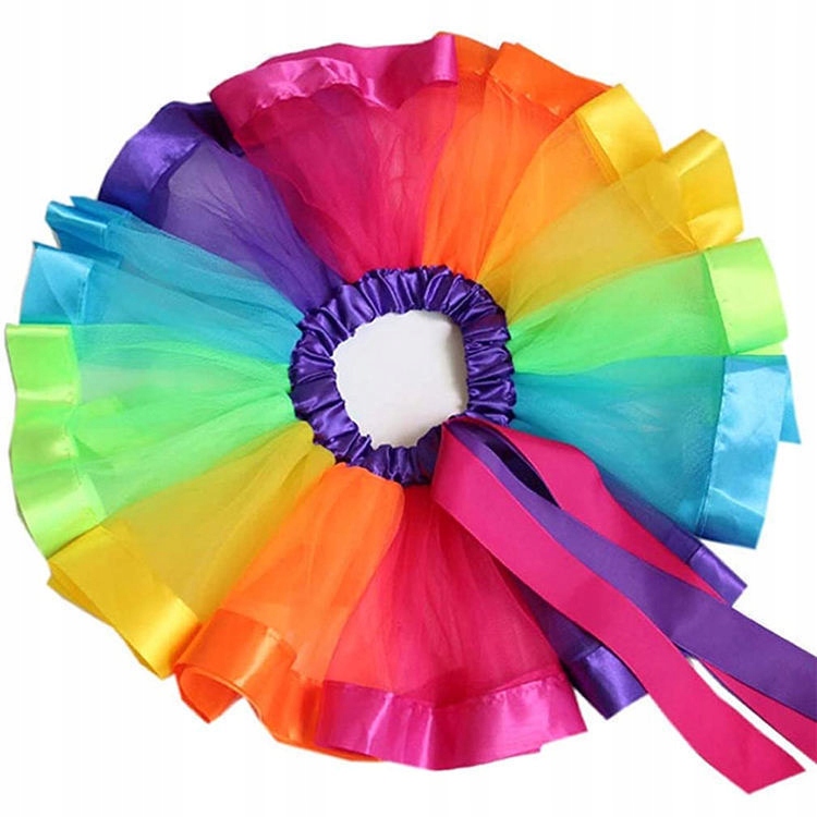 ✅ Юбка- Юбка-радуга состоит из множества полосок фатина, соединенных резинкой и отделанных атласной лентой, имеет подкладку.