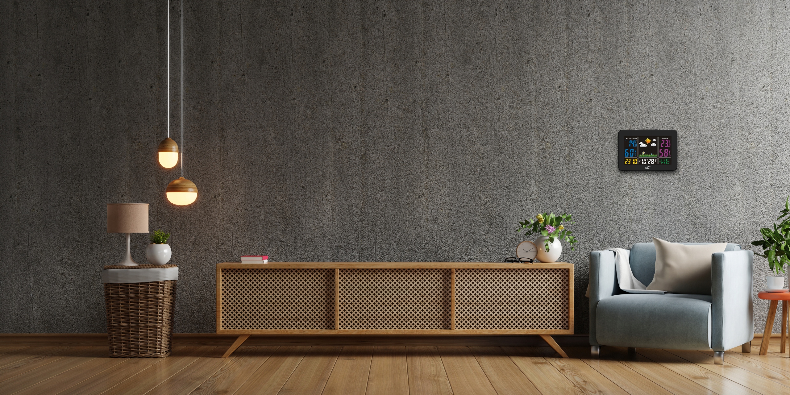 Питание от домашней розетки: В комплект также входит блок питания что позволяет подключить станцию ​​к стандартной розетке дома. При этом дисплей постоянно подсвечивается, что не только облегчает считывание данных, но и придает современный характер любому помещению.