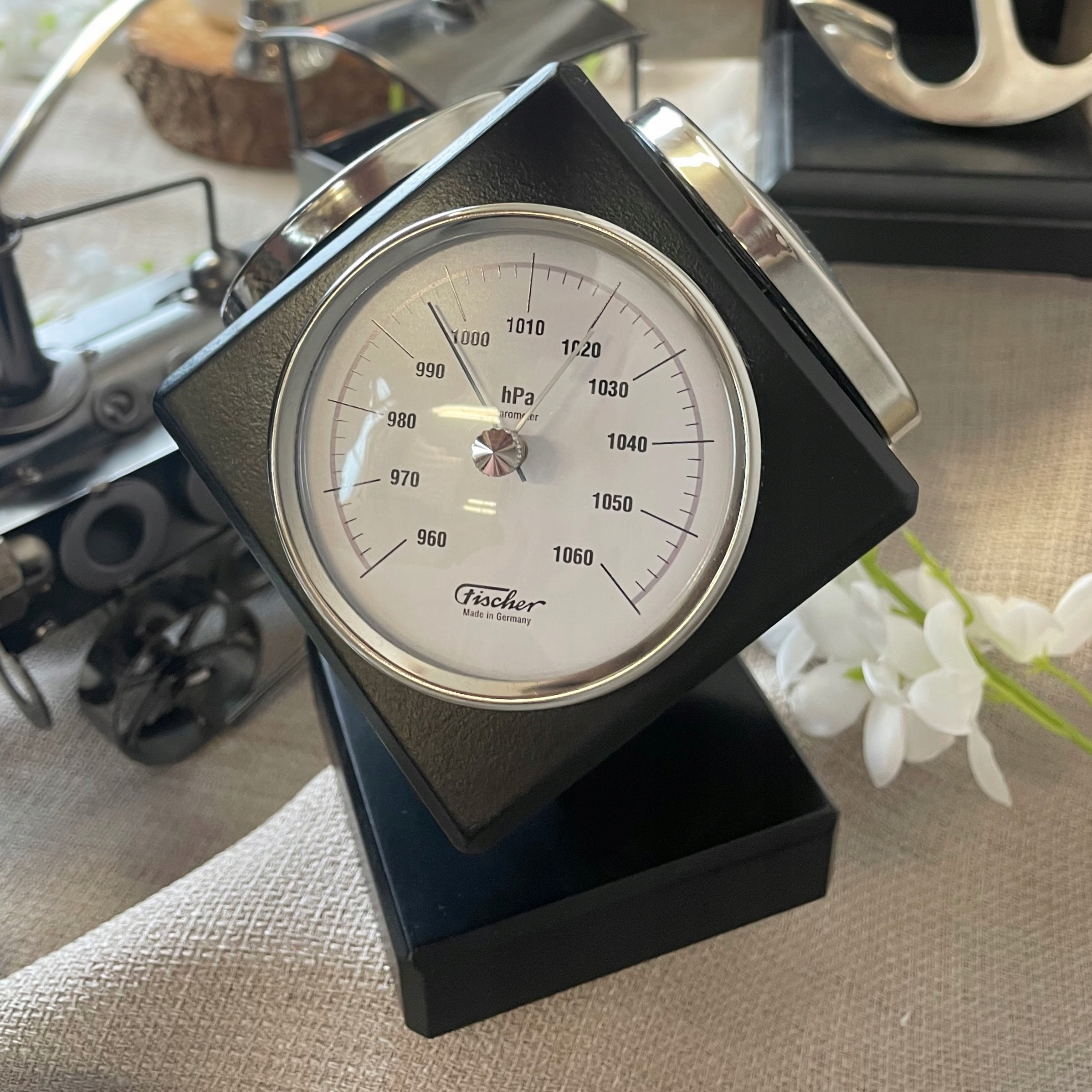 Современная настольная метеостанция - черный куб - барометр, гигрометр, термометр. Производство Fischer – Германия. Красиво сделанный, качественный товар. Устройство имеет хромированную рамку, деревянный куб – черного цвета.