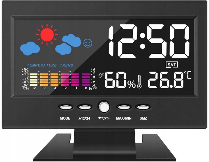 МЕТЕОСТАНЦІЯ МЕТОДЕРМОМЕТР ВНУТРІШНІЙ ГІГРОМЕТР АКУМУЛЯТОР/USB ГОДИННИК