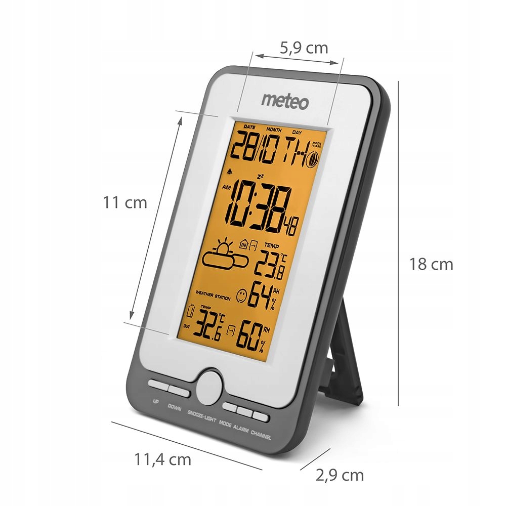 - Дальность действия датчика составляет до 60 м — его можно легко использовать в больших дом. Датчик также имеет дисплей, на котором мы можем видеть температуру и влажность воздуха.