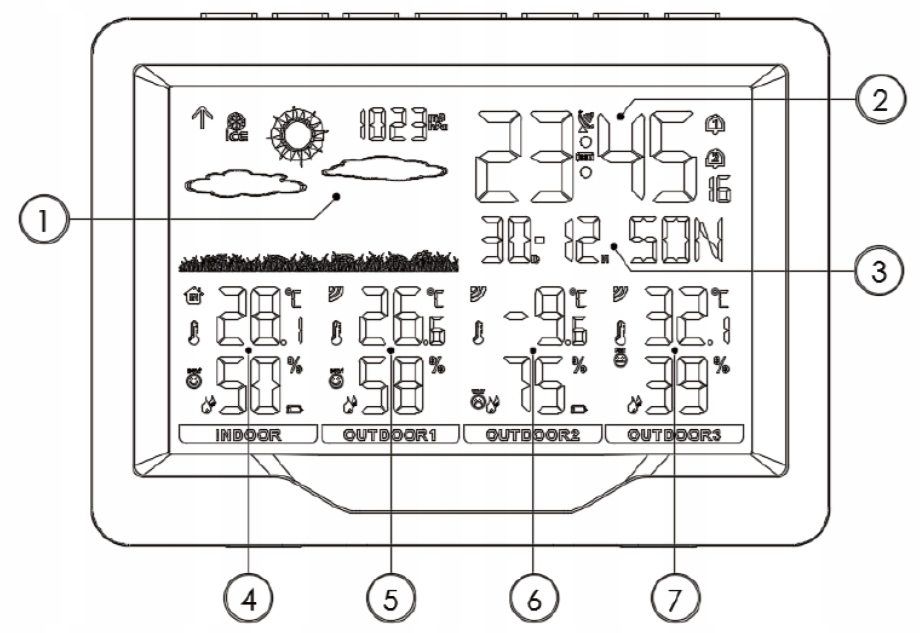 Функции: измерение температуры, давления и тенденций погоды, будильник с функцией повтора сигнала, сигнал об обледенении, память максимальной/минимальной температуры. и значения влажности. Возможность автоматической установки времени (радиочасы).
