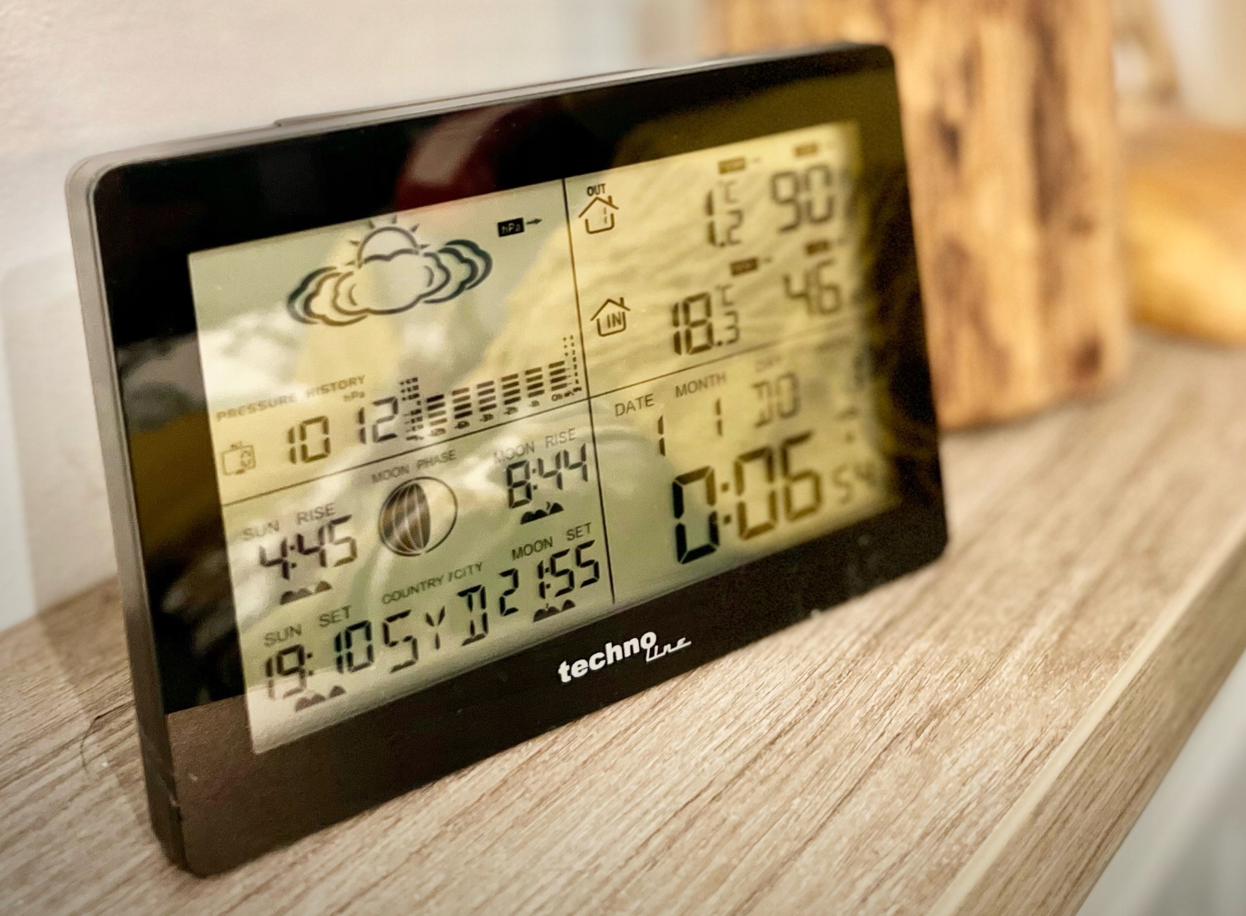 Станция также показывает нам восход и закат солнца, а также луну. Кроме того, фазы Луны показаны графически.