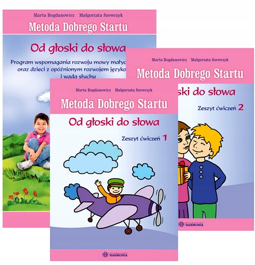 ХОРОШИЙ МЕТОД НАЧАЛА. ОТ ЗВУКА К СЛОВУ. Программа поддержки развития детей раннего возраста и детей с задержкой речевого развития и нарушениями слуха. Программа «Метод хорошего старта». «От звука к слову» подготовлено для детей дошкольного и младшего школьного возраста, которые развиваются негармонично: с задержкой речевого и речевого развития при различных состояниях, напр. слуховые и интеллектуальные нарушения, СЛИ и сопряженные нарушения развития. После соответствующей адаптации, особенно в области двигательных, слуховых и зрительных упражнений, его можно использовать и на занятиях с детьми младшего возраста (с 2 лет), развитие которых протекает нормально. Цель программы «От звука к слову» — поддержка развития языка и речи у детей с нарушениями слуха и задержкой речевого развития. Стихи и песни, а также связанные с ними игры являются основой приобретения и расширения словарного запаса, при их создании учитываются акцент, мелодика и ритм речи. Запланированные упражнения регулируют дыхание, улучшают голос, слух и произношение слогов, слов и простых предложений. В состав программы «От звука к слову» входят: – учебник – инструкция к программе; – две тетради с иллюстрациями и текстами рифм; – набор из 14 карточек с абстрактными схемами для двигательных, слуховых и зрительных упражнений (один рисунок на два стишка); – компакт-диск с предлагаемыми мелодиями к стишкам.