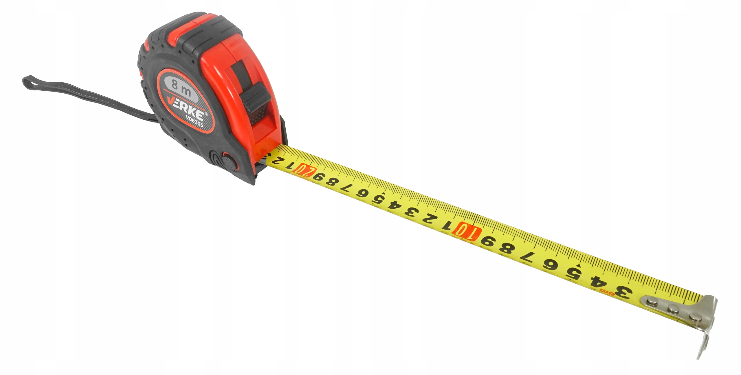 Профессиональная свернутая мера с длиной 8 м. Желтая лента со шкалой, применяемая с использованием очень точной методики струйной печати. Поверхность защищена нейлоновым покрытием, которое защищает ленту от истирания и обесцвечивания под воздействием солнечного света. Заканчивался твердым, магнитным крючком. Кассета, оснащенная коротким поводком для закрепления. Идеально подходит для быстрых точных измерений