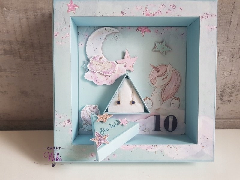 Коробка Shadow Box, «Shadow Box» - это своего рода витрины для представления ценных объектов, случайных карт, альбомов, рекордов, духов, ювелирных изделий или других. Shadow Box закрыт прозрачной быстрой фольгой из ПВХ 0,3 мм, которая также сделана на прессе. У него очень удобные уши, которые помогут вытащить его. Коробка после складывания очень жесткая, она не плавает вбок, абсолютно не требует никакого склеивания.