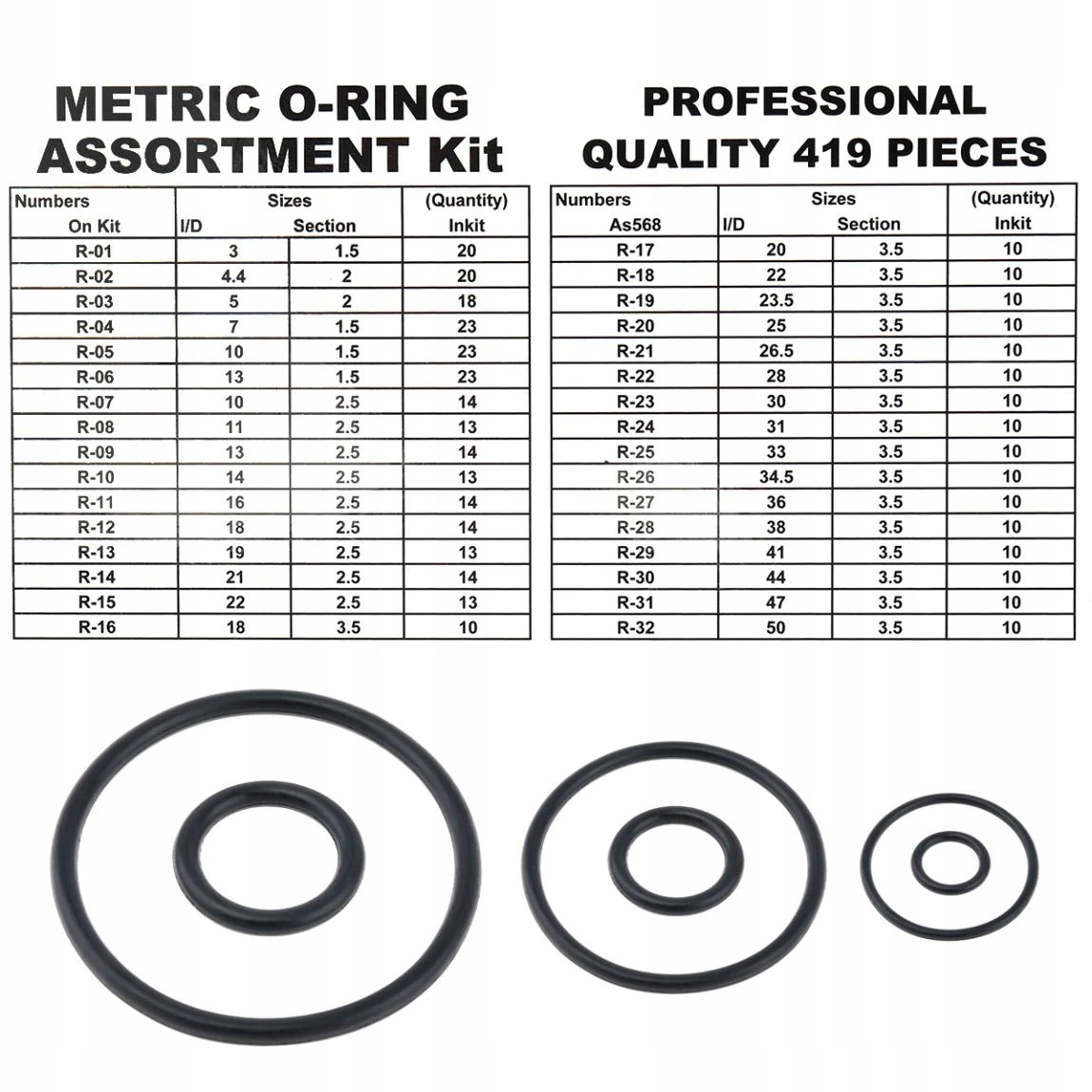 МЕТРИЧНІ КІЛЬЦЯ УПЛОТНИТЕЛЬНИЙ КОМПЛЕКТ 419 ШТ
