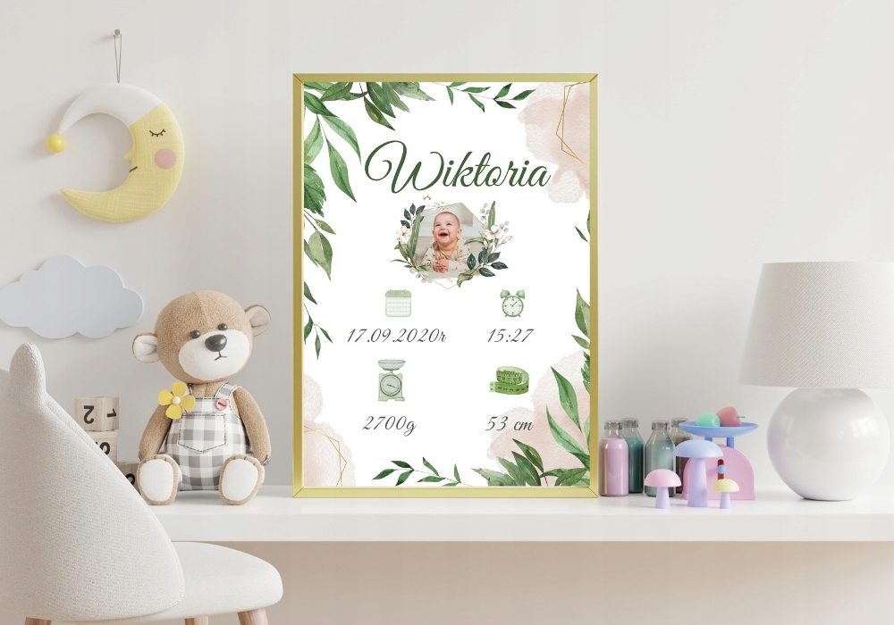 Персонализированное метрическое рождение ребенка A3 в кадре h1> плакат с данными ребенка | Цифровая печать на фотобумаге премиум -класса h2>