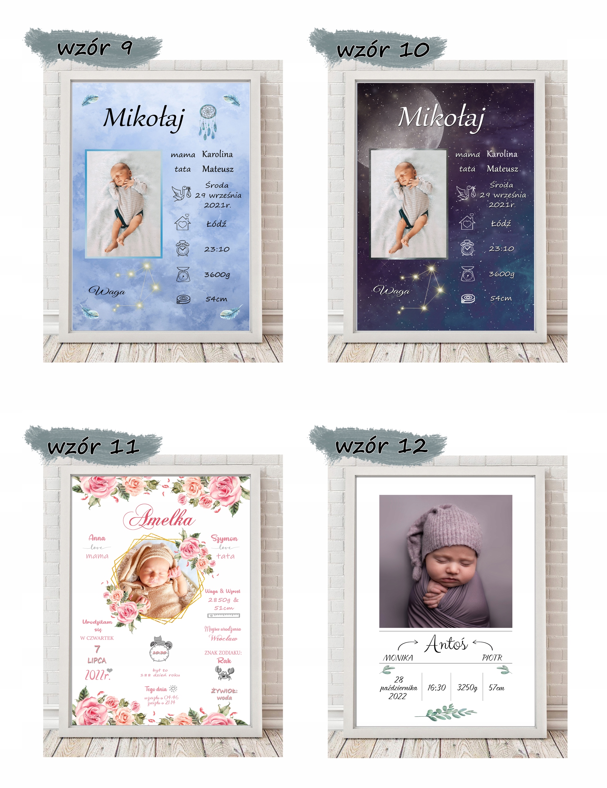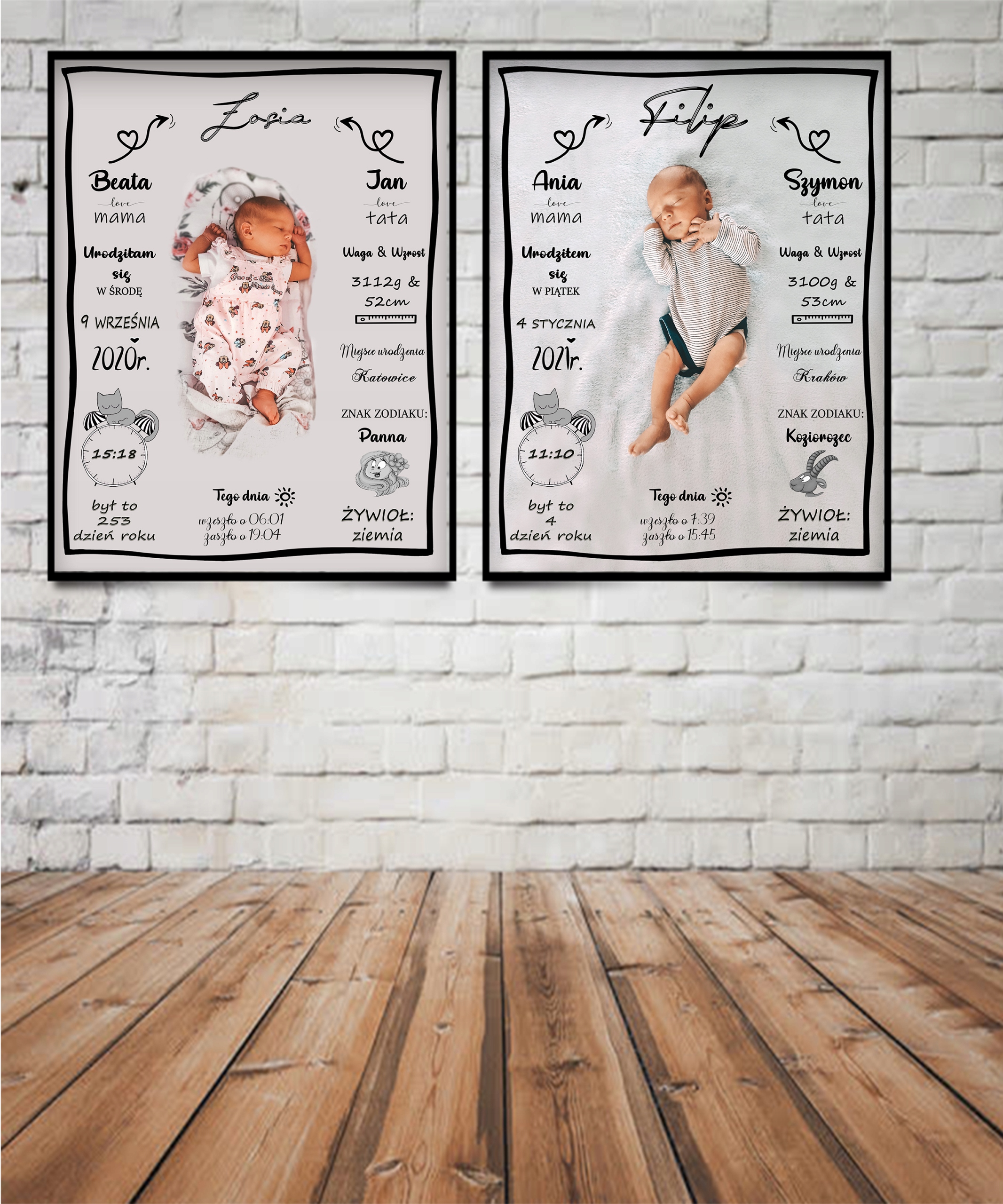 Метрика с фото День Рождения Крещение W5 рамка A3