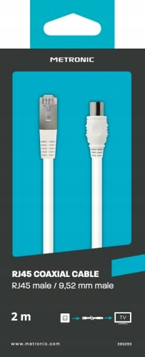 Metronic RJ45/TV Coaxial 9,52 мм мужского по мужчинам 2 м - 395285, совместимый с телевизором, Cat 6a мужской/мужской stright