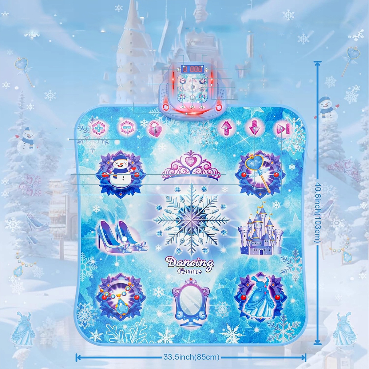 Dancuke Dance Mat-A-Toy для девочек в возрасте 3, 4, 5, 6, 7, 8 и 9 лет, 8-патильный танцевальный коврик с Bluetooth, контролем жидкого света и скрытой подставкой, подарок для принцессы в возрасте 3-12 лет (103 x 85 см, синий) h1>